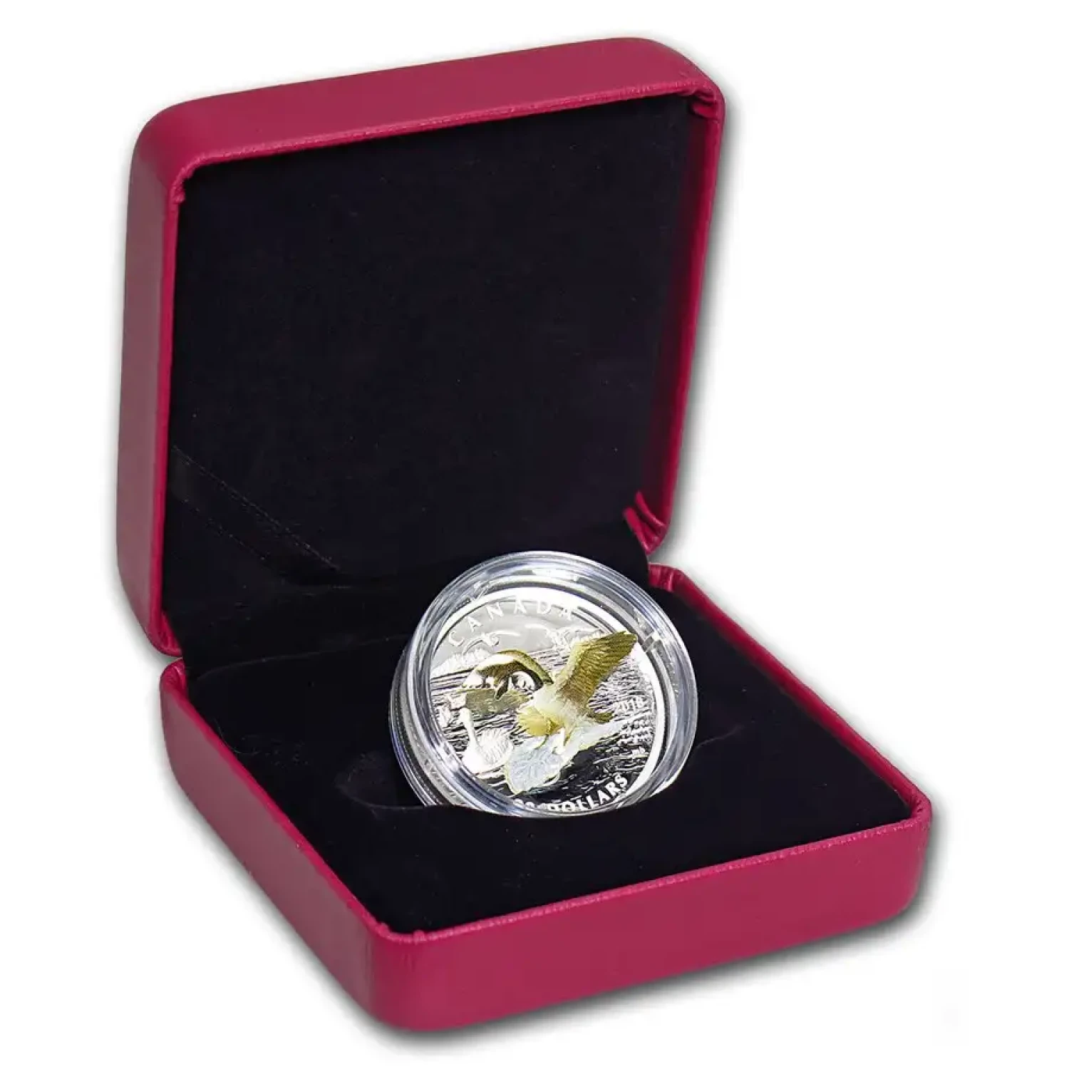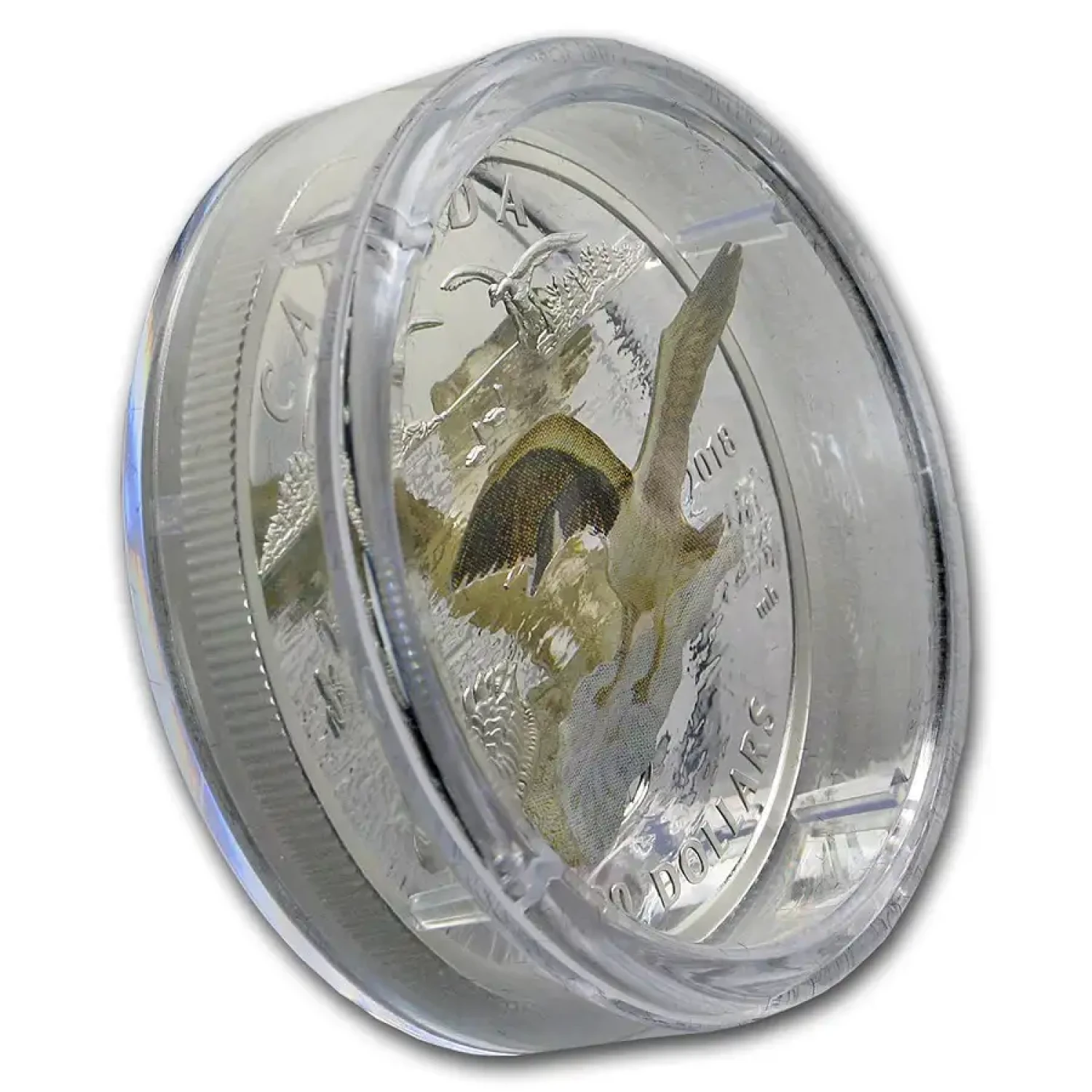 As the second coin in the series, this release captures the full majesty of a classic Canadian icon in motion, with a colorful 3D element that simulates the goose’s splashy descent, feet first, into a quintessentially Canadian lake setting.
