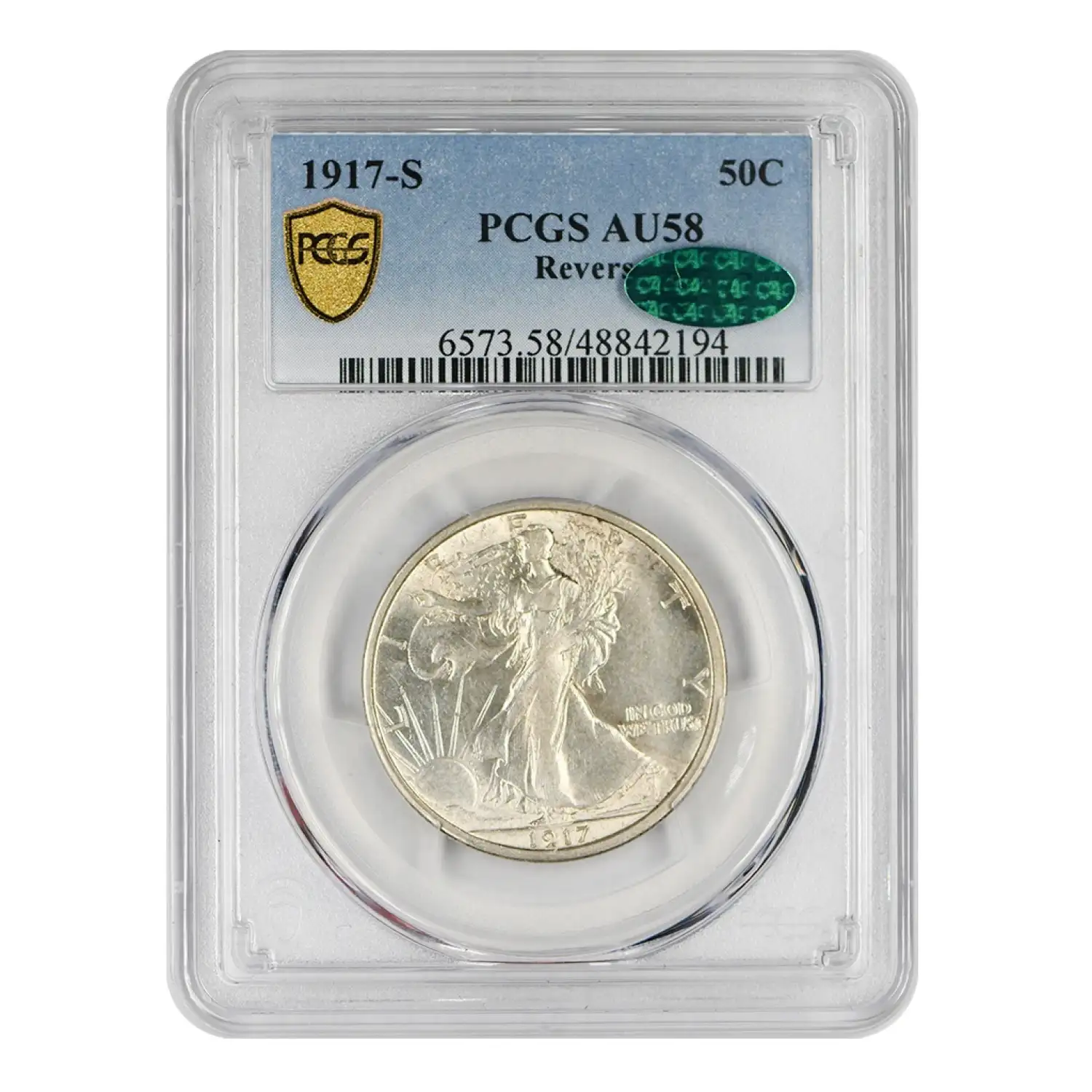 1917 S Walking Liberty Half Dollar PCGS AU-58 Reverse CAC