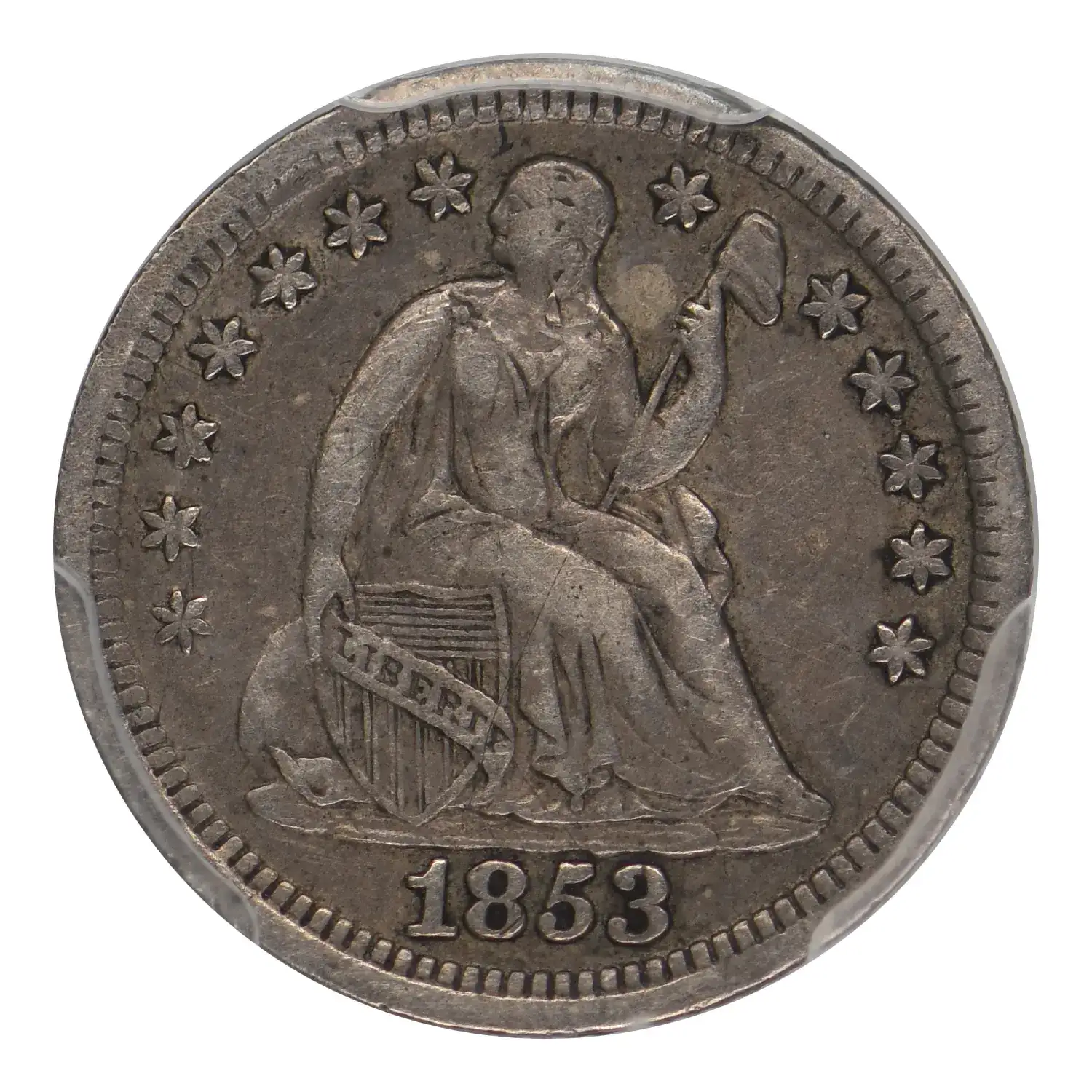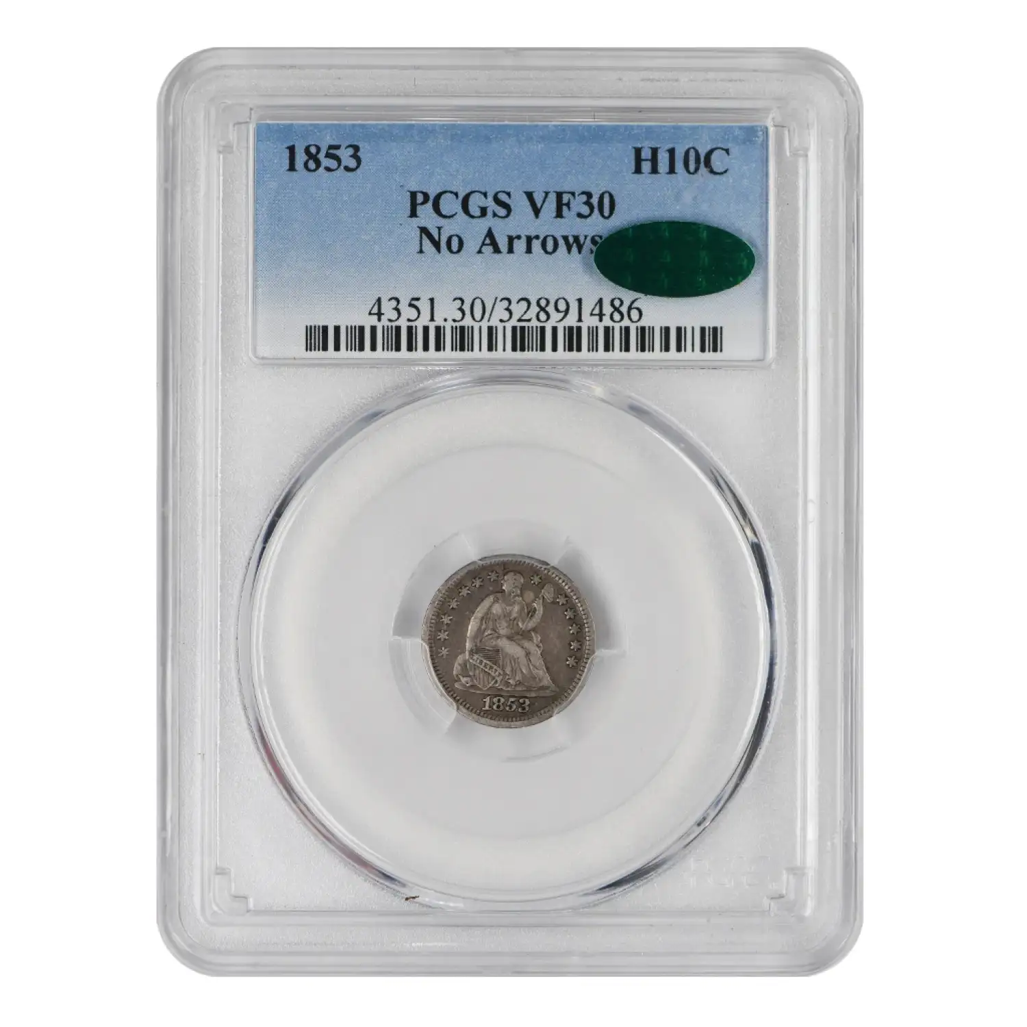 1853 P Liberty Seated Half Dime PCGS VF-30 No Arrows CAC
