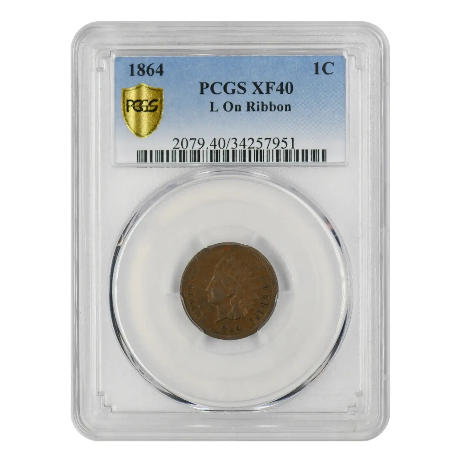 1864 P Indian Head Cent PCGS XF-40 L on Ribbon BN