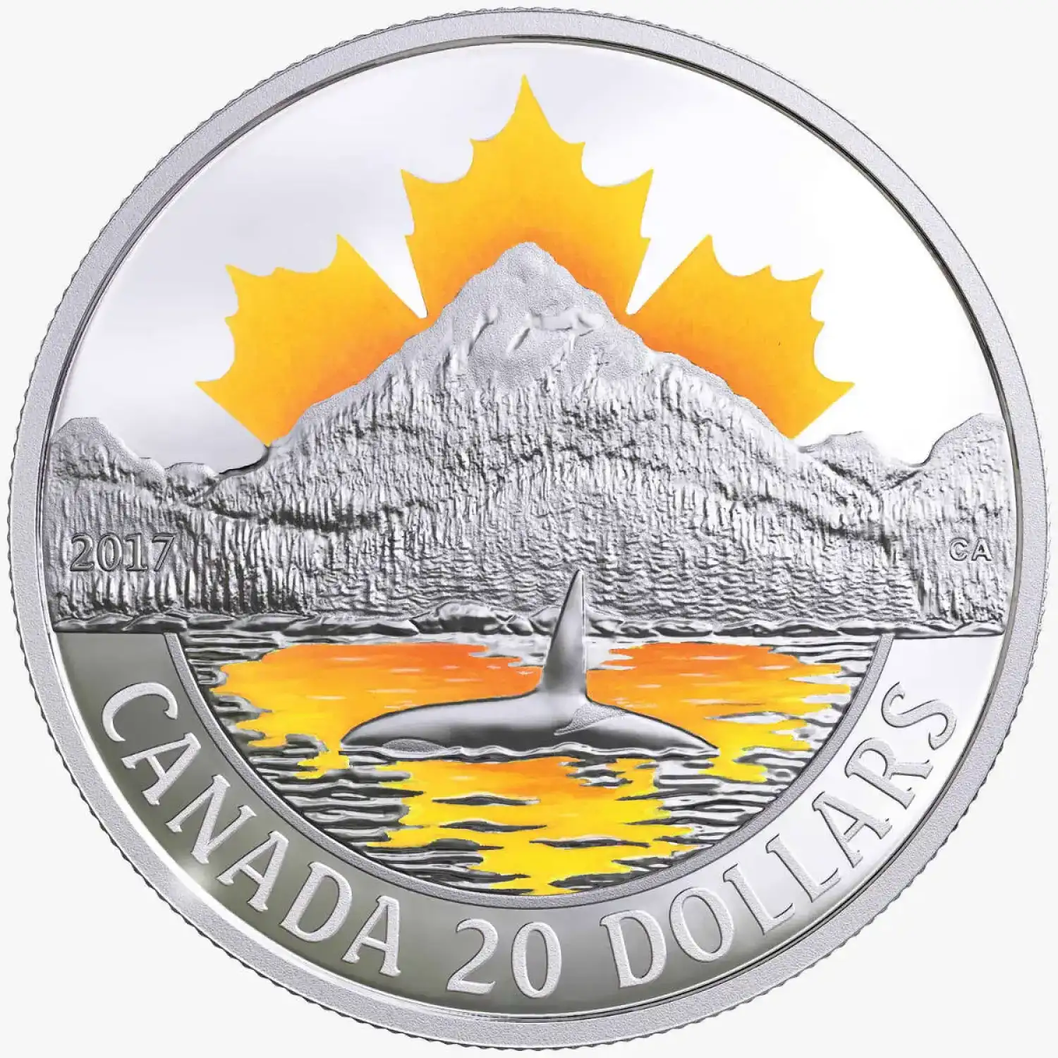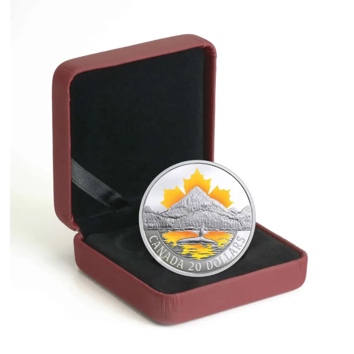 This 2017 $20 fine silver coin is the first in the new “Canada’s Coasts” series and features a stunning sunset on Canada’s beautiful Pacific coast together with a unique maple leaf portrayal. Adding to its collectability, the mintage is limited to just 7,500.