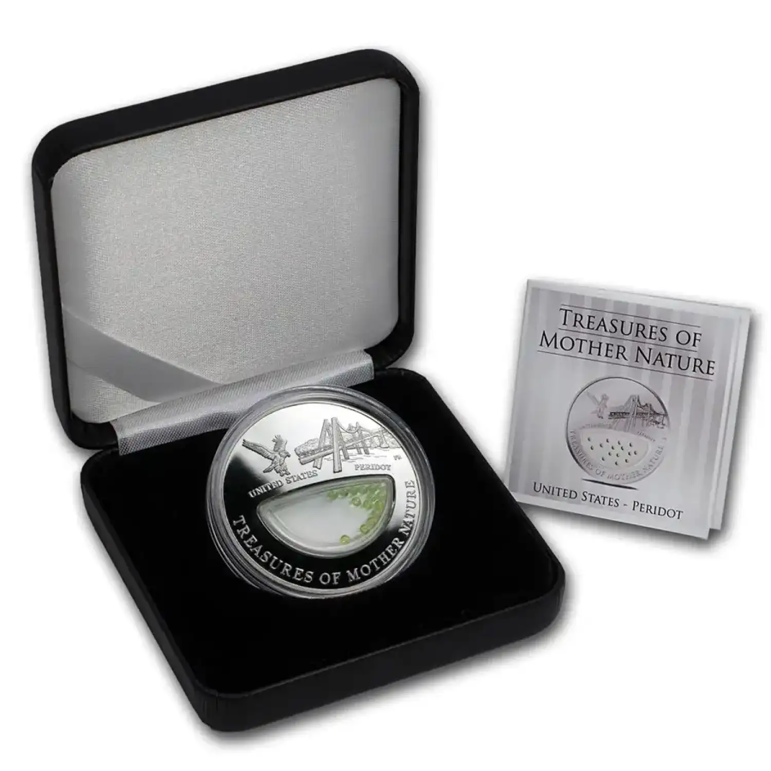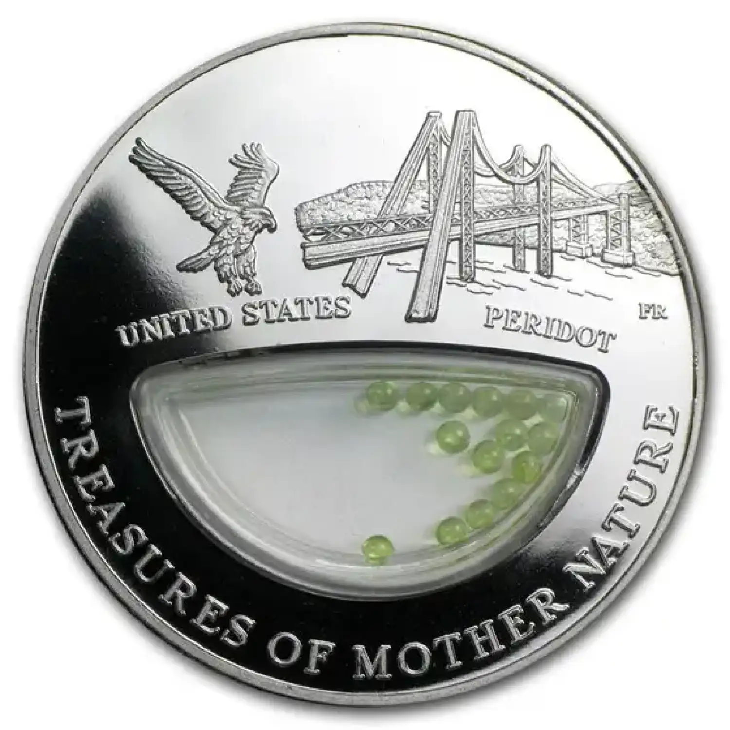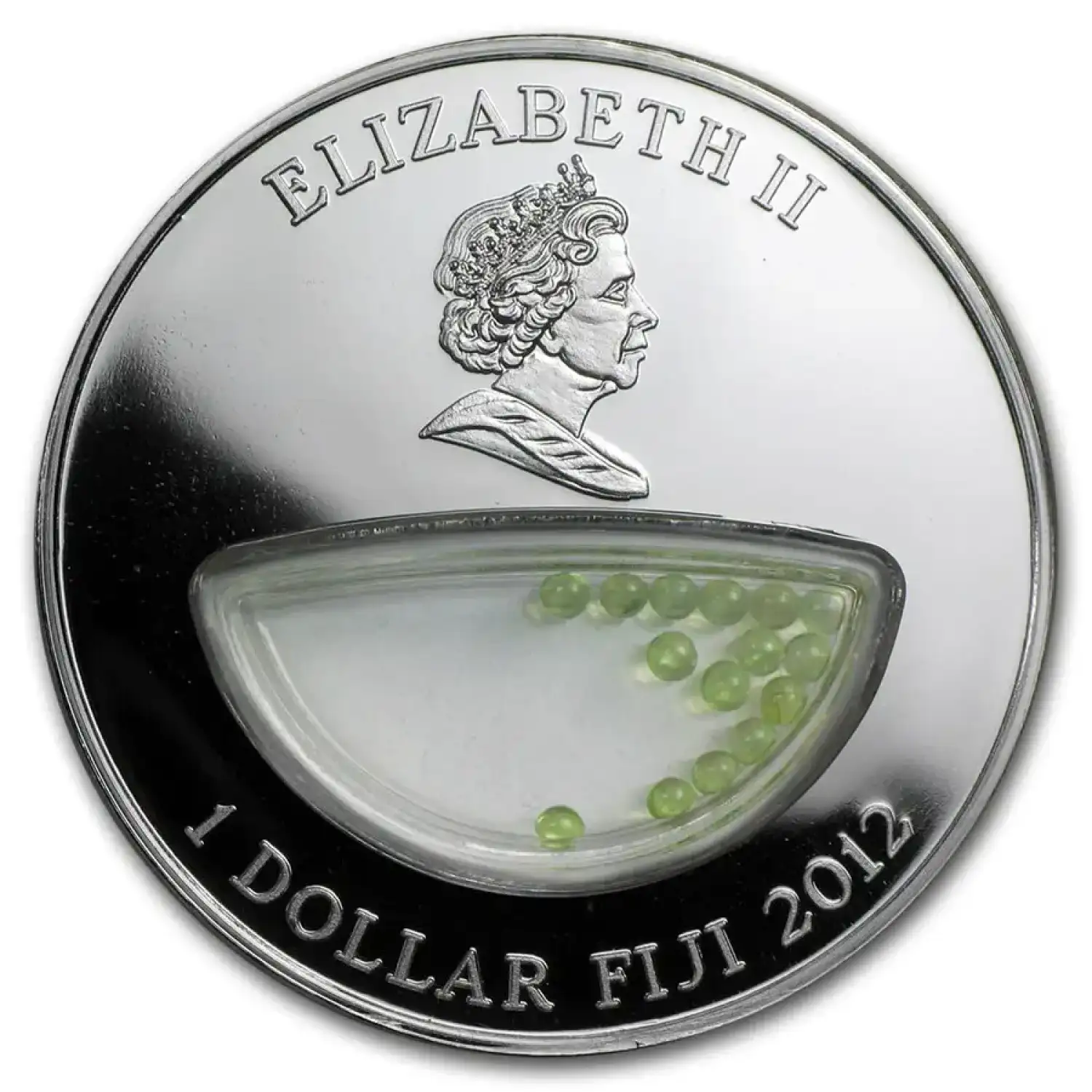 This .999 proof Silver coin incorporates a transparent half-circle locket containing 15 real peridots. Native Hawaiians believed that these gemstones were the tears of the goddess Pele. They were originally believed to be Emeralds. Each coin has been individually numbered and is therefore unique! The obverse portrays the Majesty Queen Elizabeth II. Comes in a box and with a certificate of authenticity.