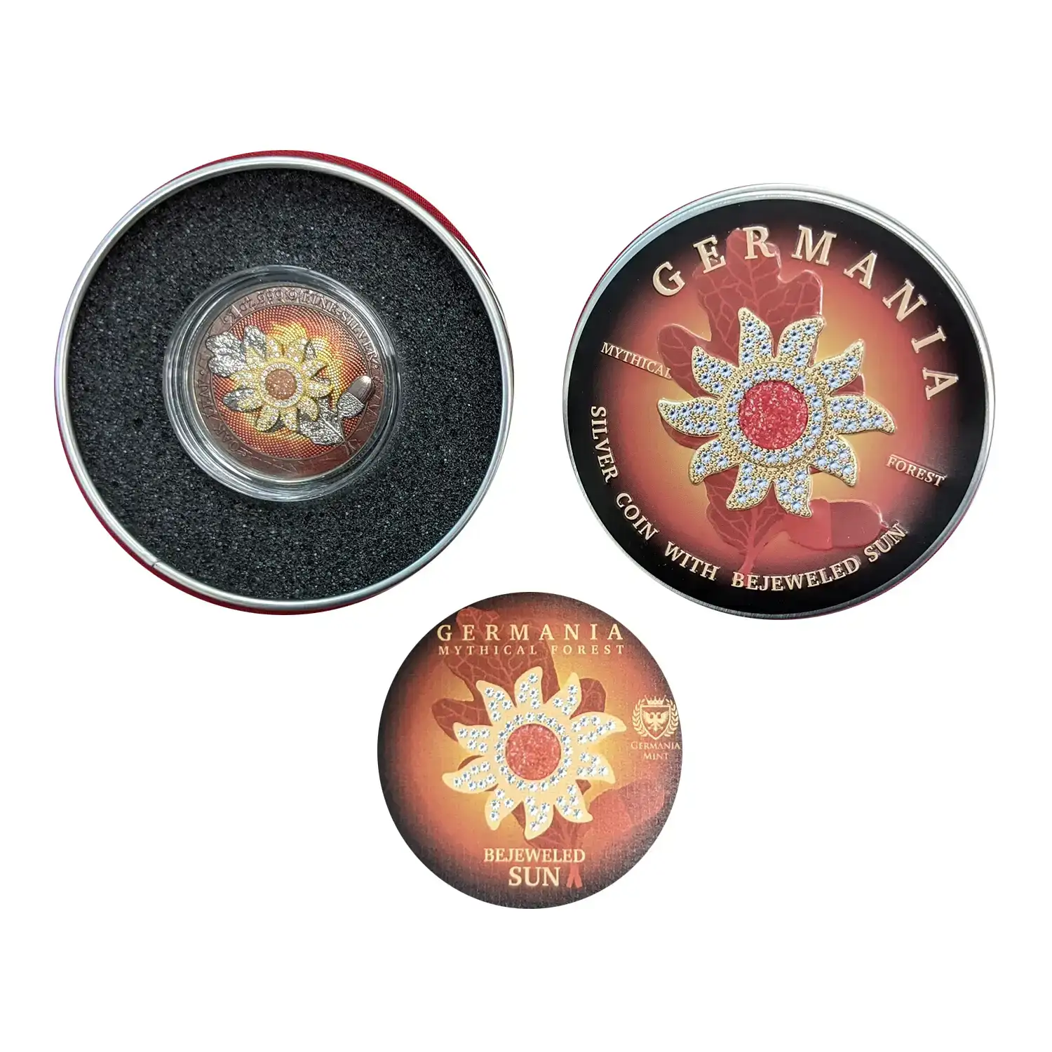 Germania 2019 $5 Mark Oak Leaf Bejeweled Sun 1 oz Silver Coin 100 pcs only!