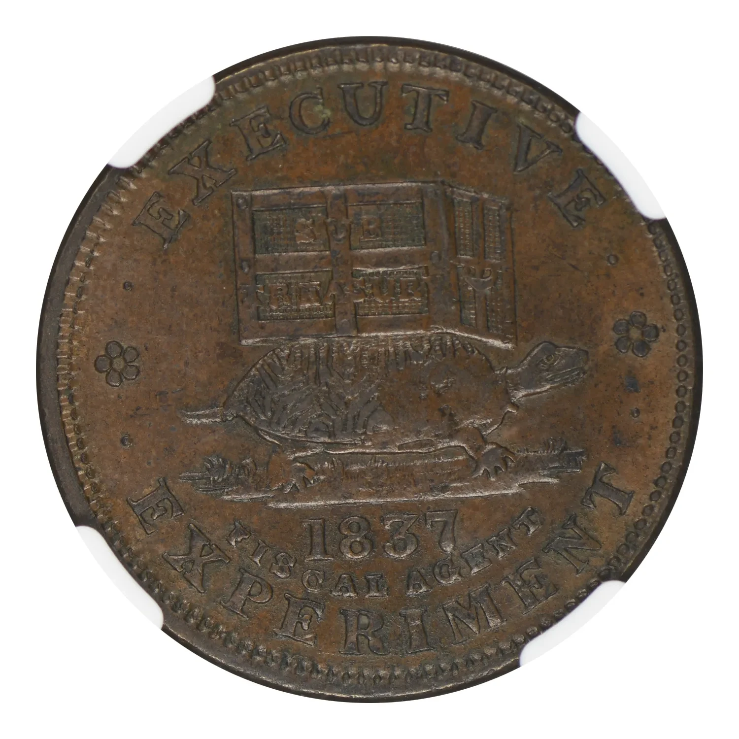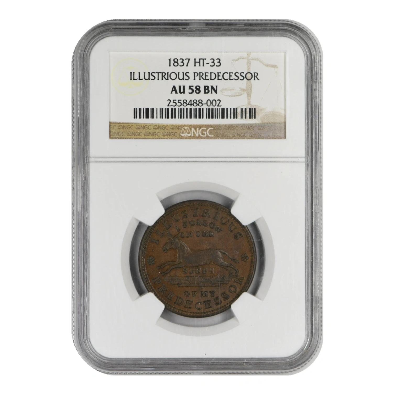 1837 Hard Times Tokens Not One Cent Copper NGC AU-58 ILLUSTRIOUS PREDECESSOR BN