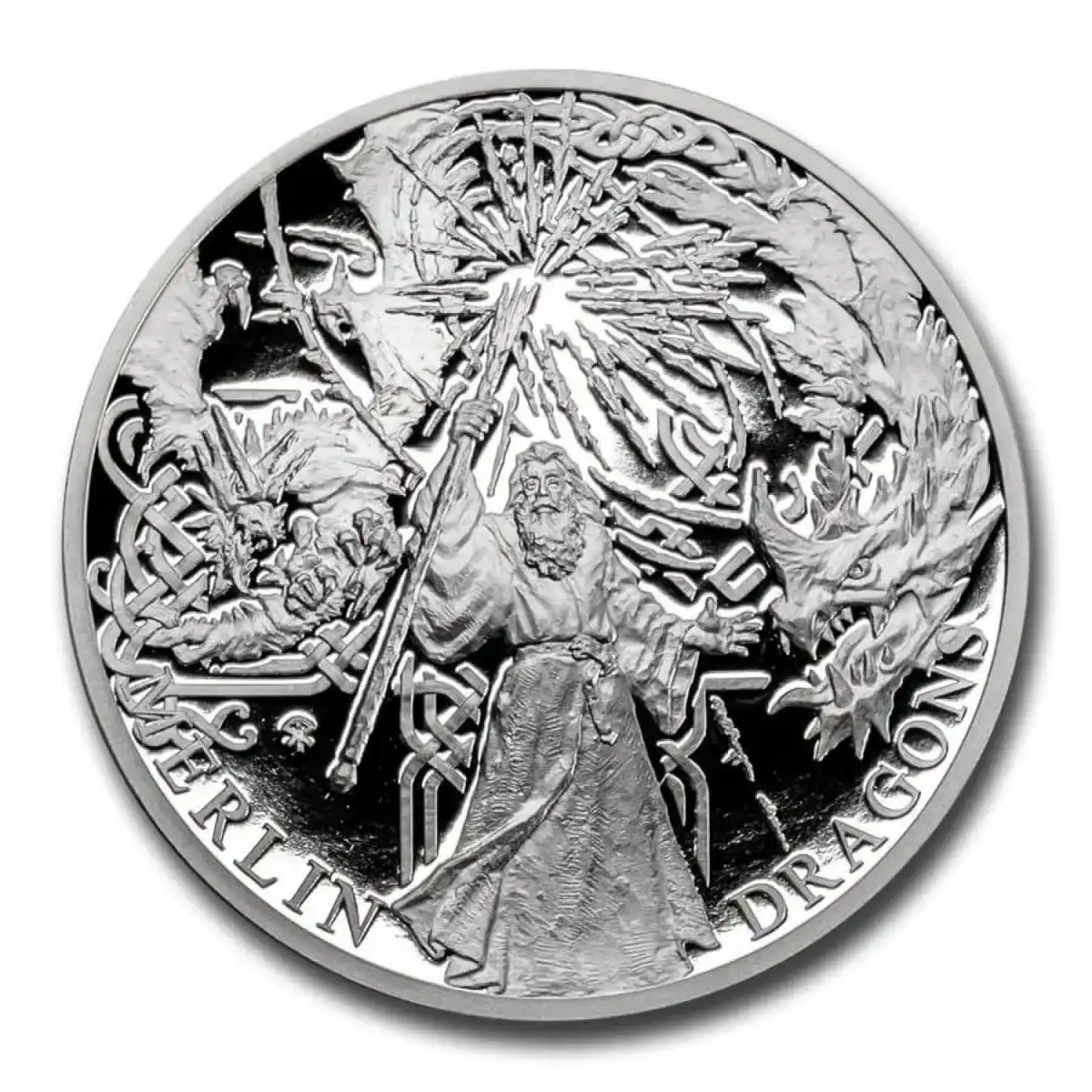 A coin dedicated to a wizard. Add this Merlin and Dragons Silver coin to your cart today!