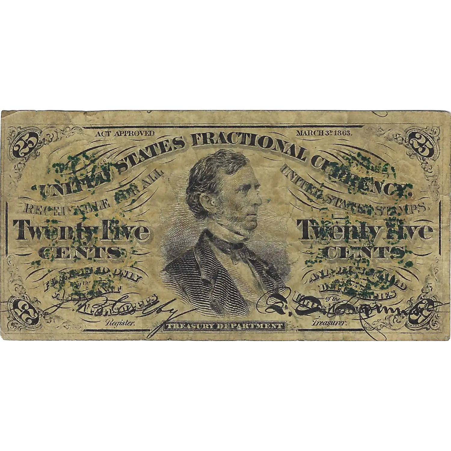 1863, 25 Cents Fractional Currency Note, Third Issue, Circulated