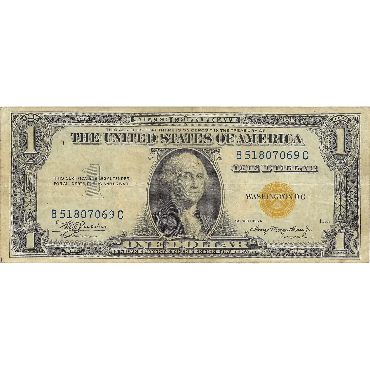 $1 1935-A Small Size Silver Certificate, North Africa Emergency Issue, Circulated