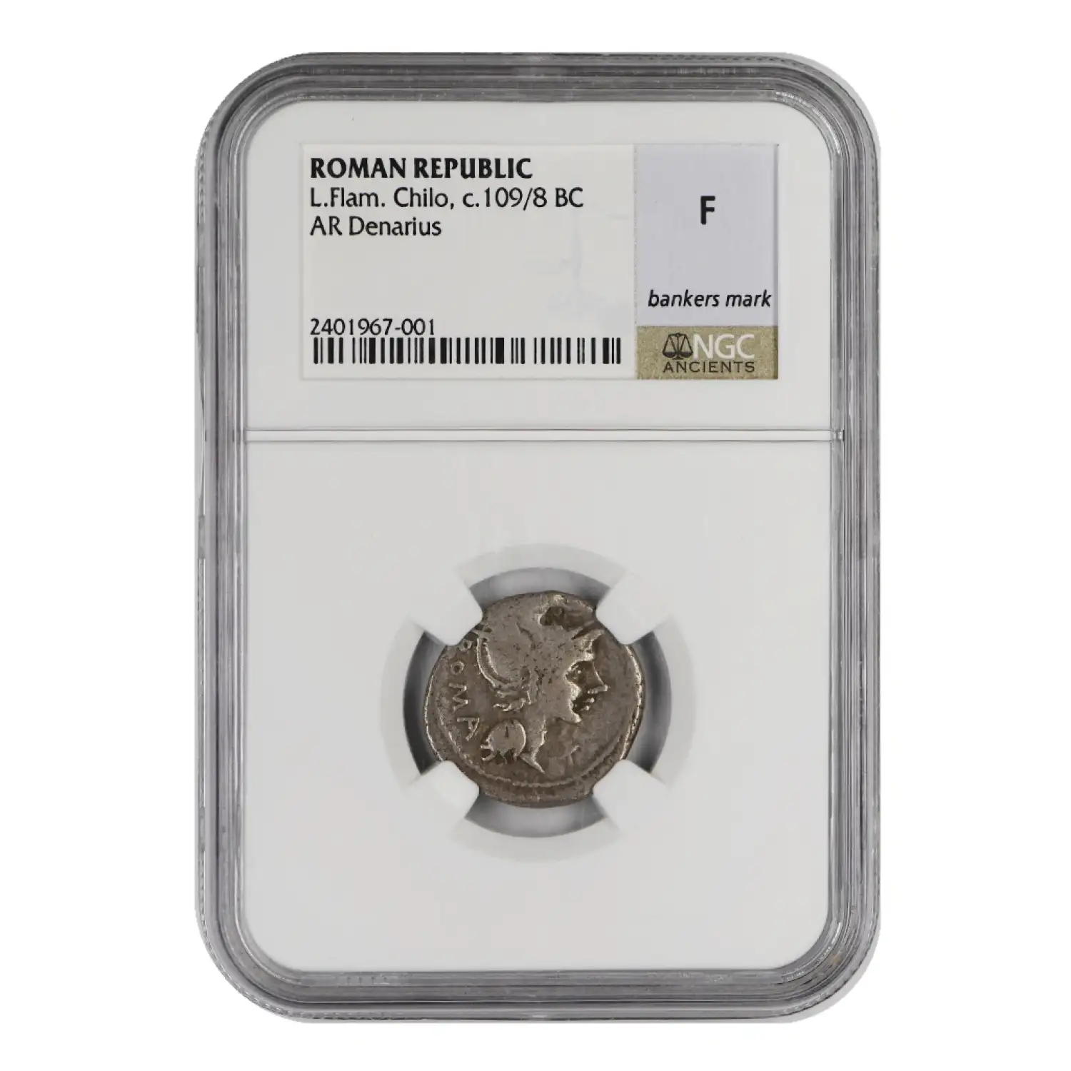 Roman Republic 109/8 BC AR Denarius L.Flam. Chilo NGC F