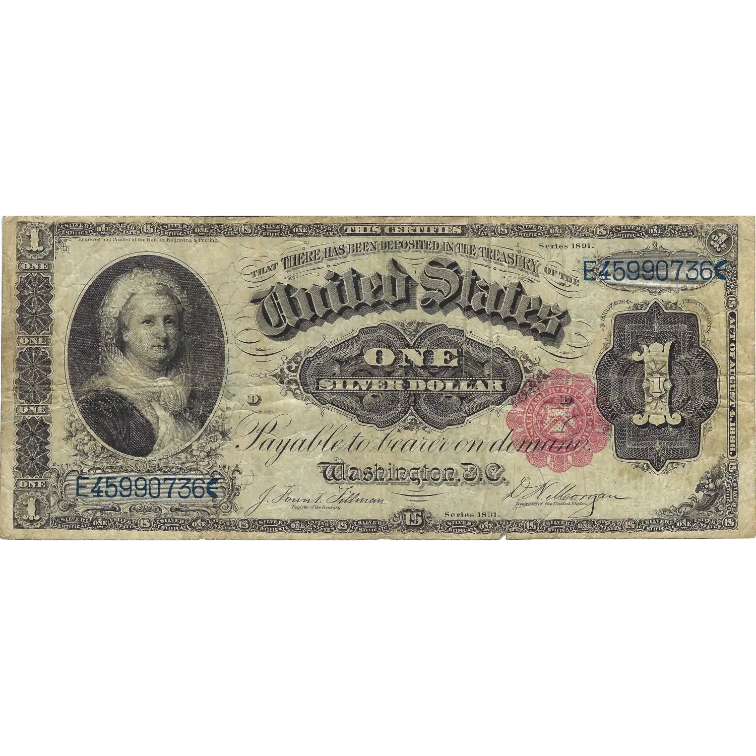 $1 1891 Large Size Silver Certificate - Martha Washington - Circulated