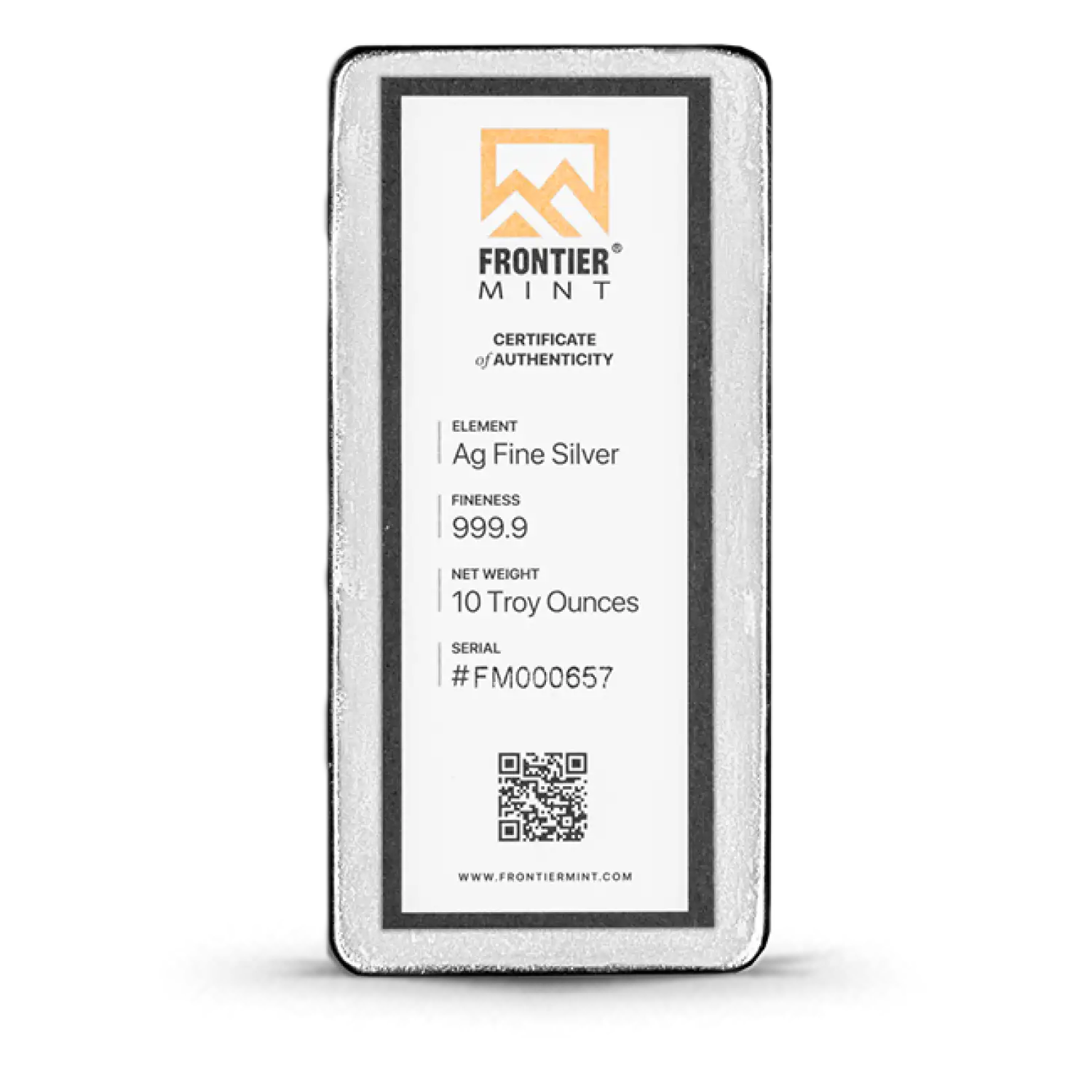 Obverse Design: Frontier Mint logo above inscriptions detailing the bar’s weight, purity, and unique serial number