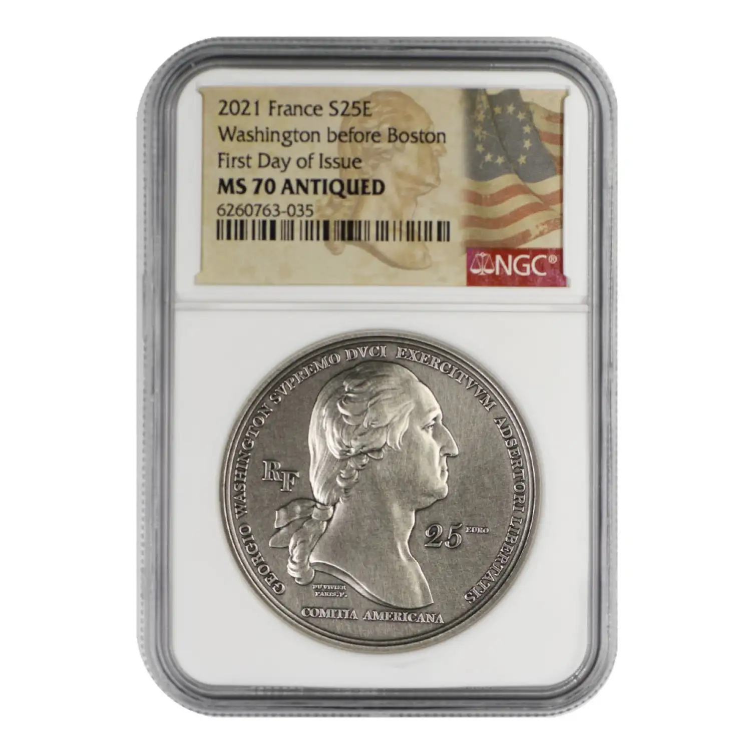 2021 Private Issued Medals, France S25E, Washington Before Boston, First Day of Issue NGC MS-70 Antiqued