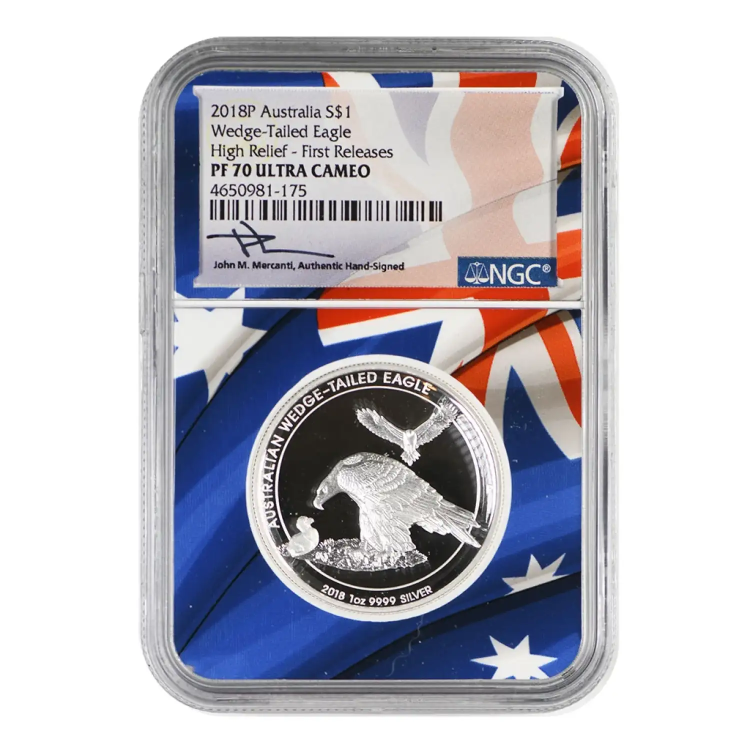 2018 P Australian Wedge-Tailed Eagle NGC PF-70 High Relief, First Releases Ultra Cameo