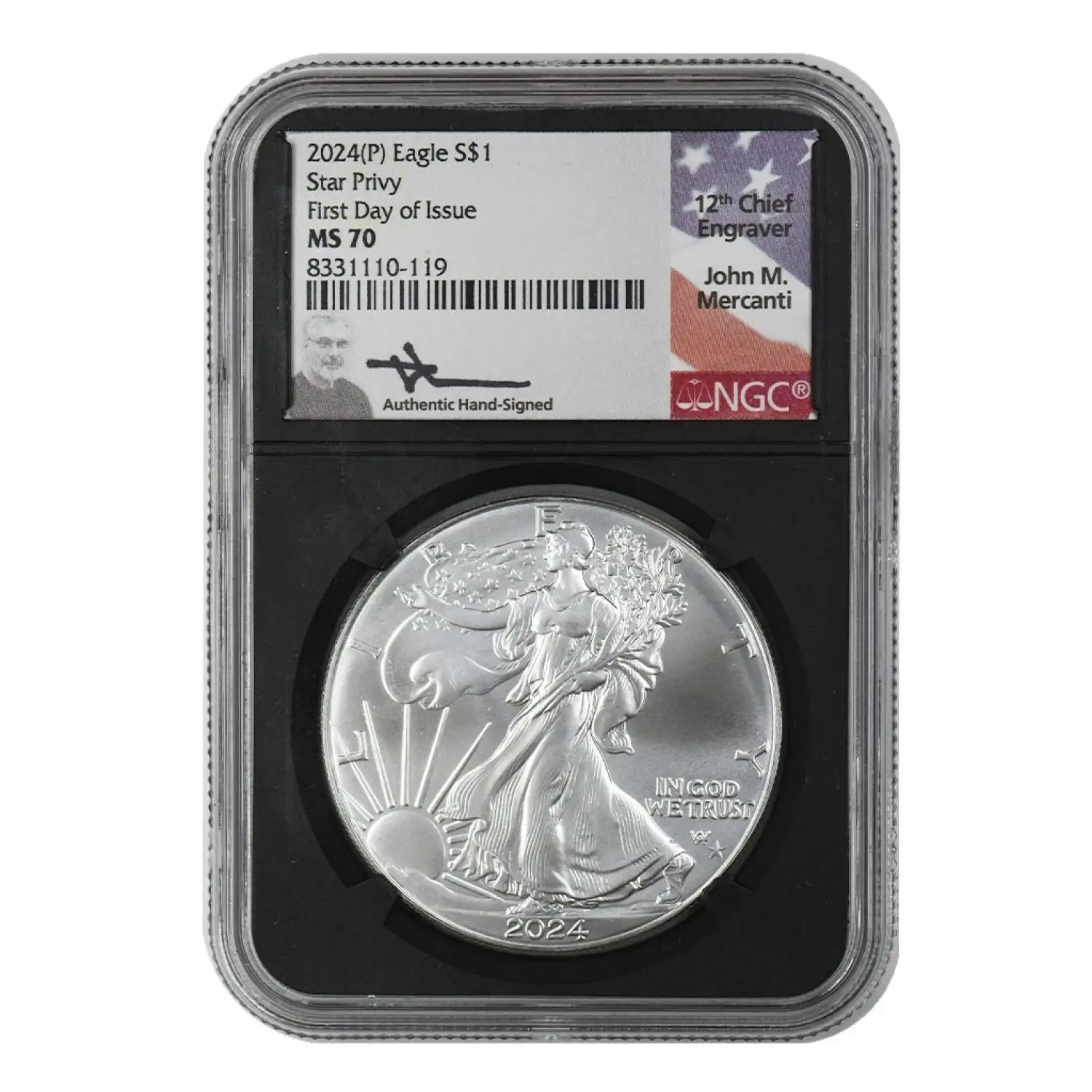 2024 Bullion Silver Eagles NGC MS-70 Star Privy First Day of Issue