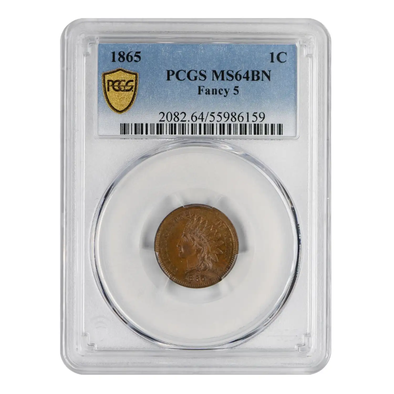 1865 Indian Head Cent PCGS MS-64 BN Fancy 5
