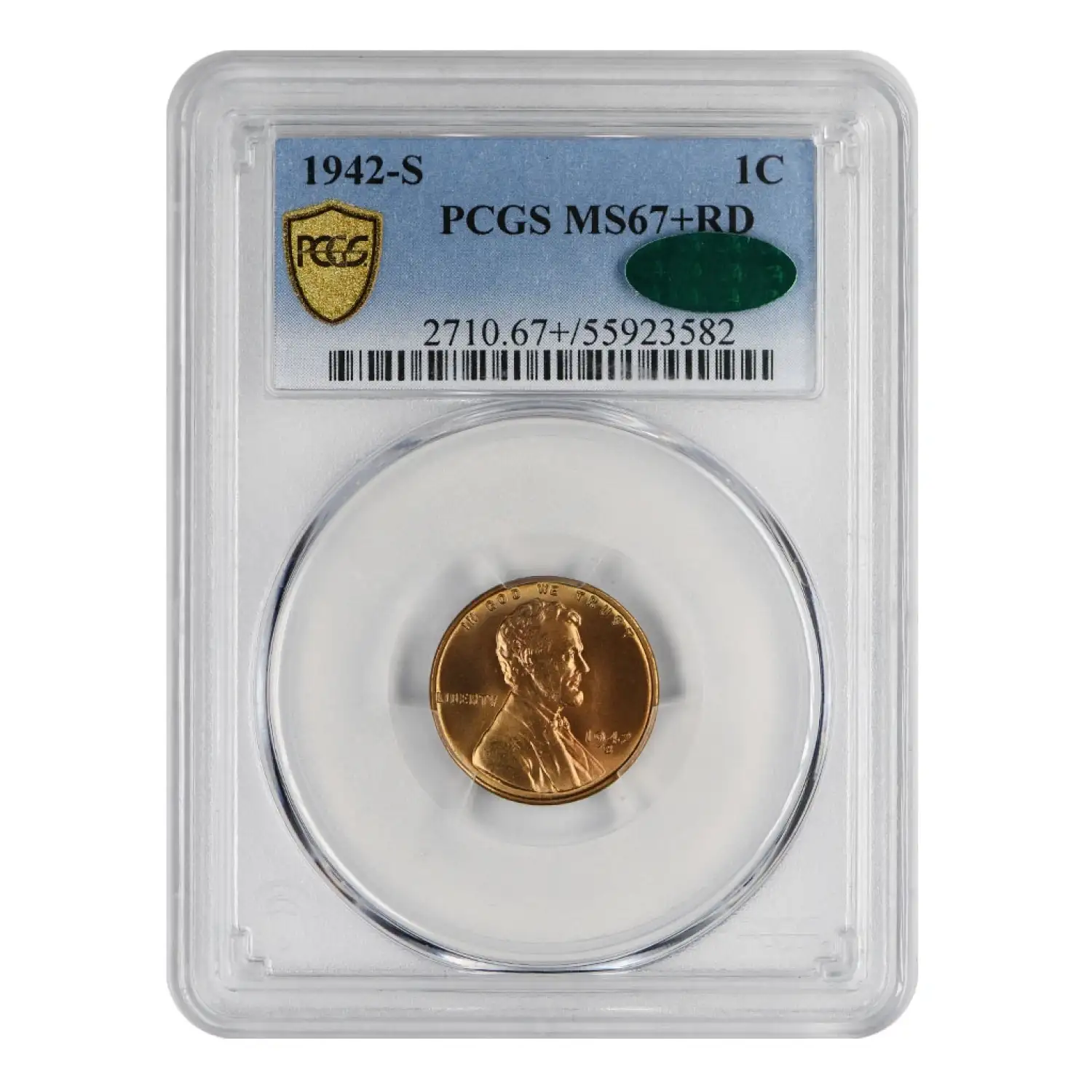 1942-S Lincoln Cent PCGS MS67+RD CAC