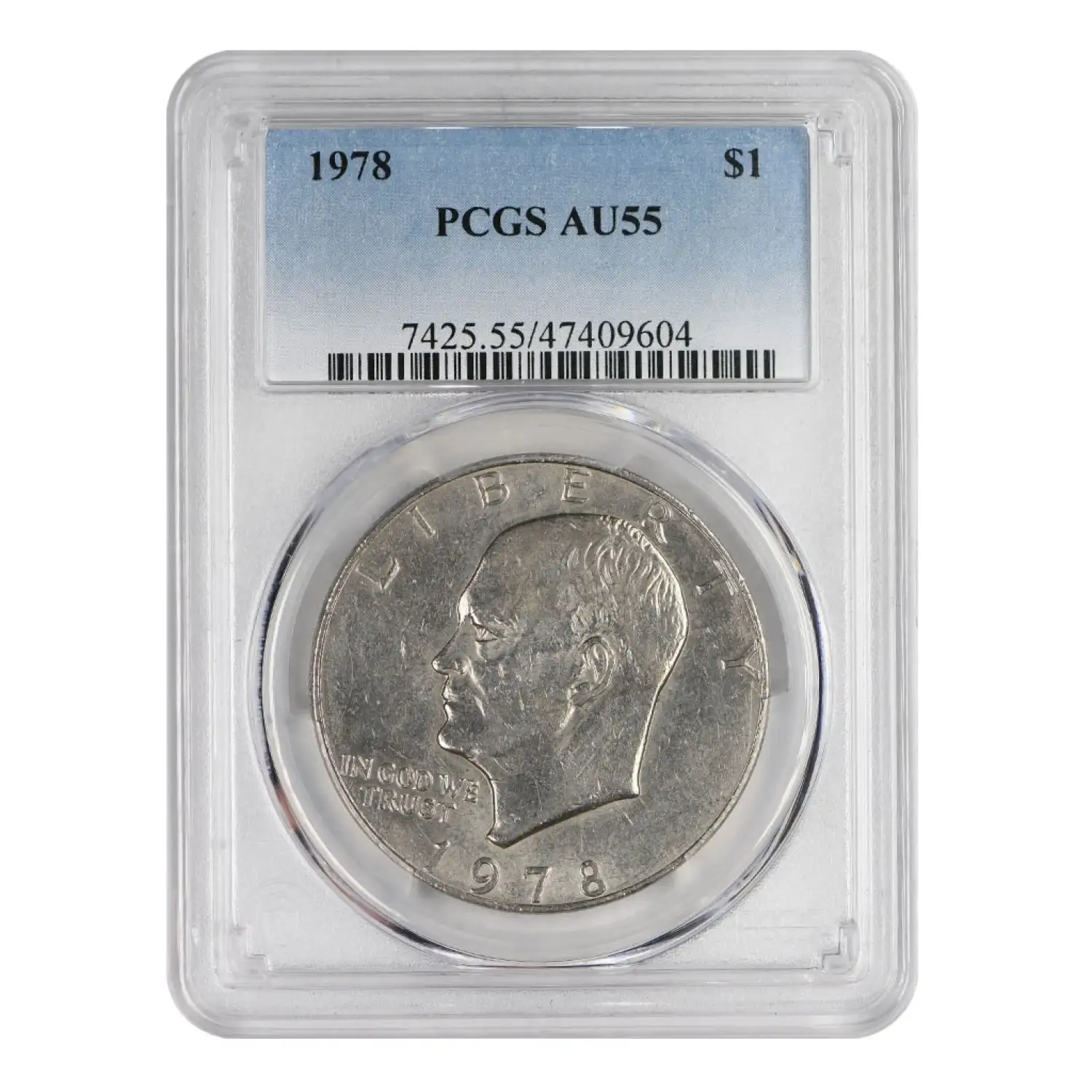 1978 Eisenhower Dollar PCGS AU55. An unusually low grade for a certified clad coin.