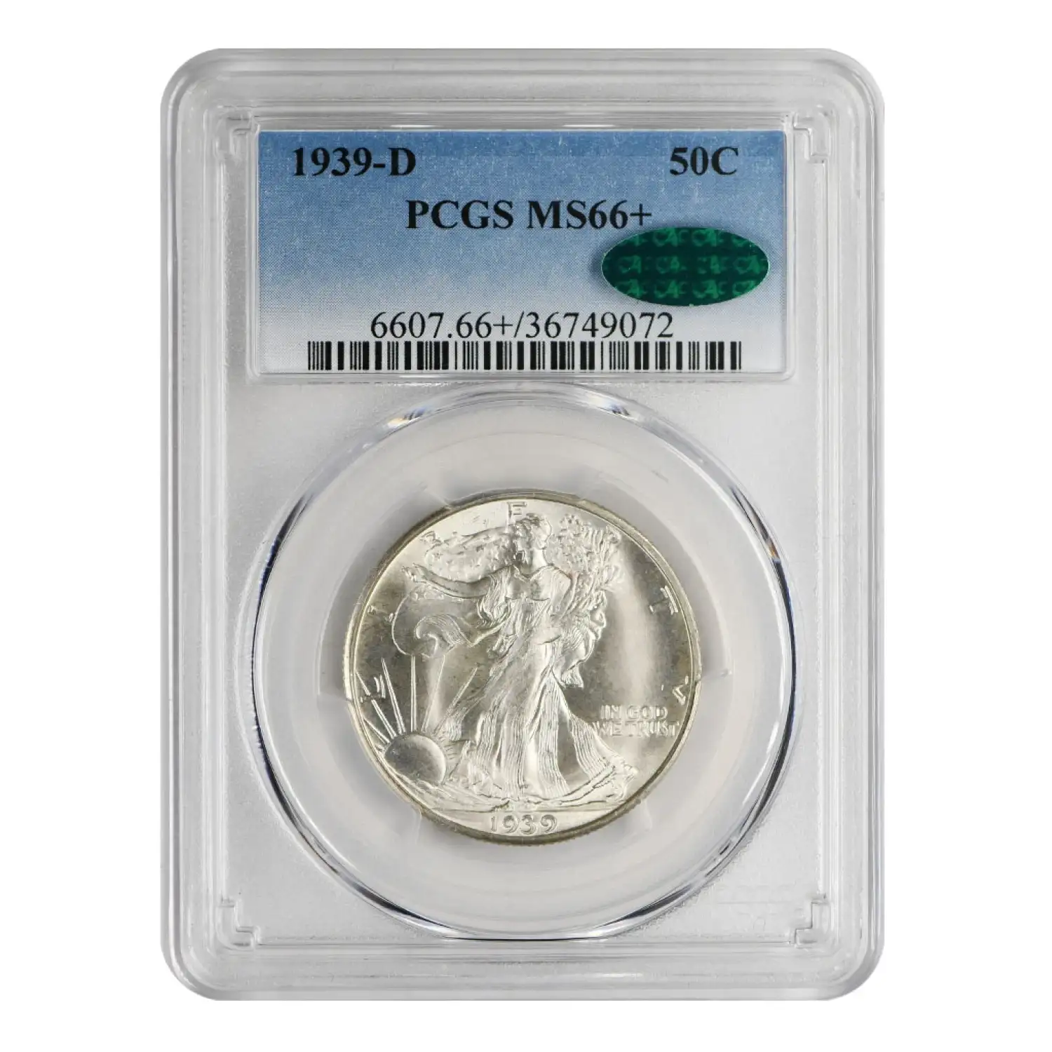1939 D Walking Liberty Half Dollar PCGS MS-66+ CAC