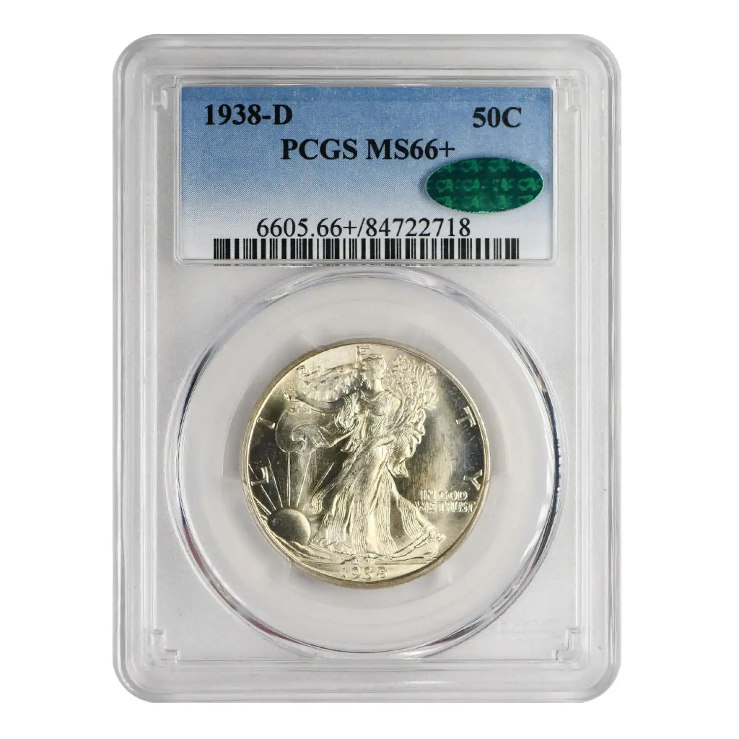 1938 D Walking Liberty Half Dollar PCGS MS-66+ CAC