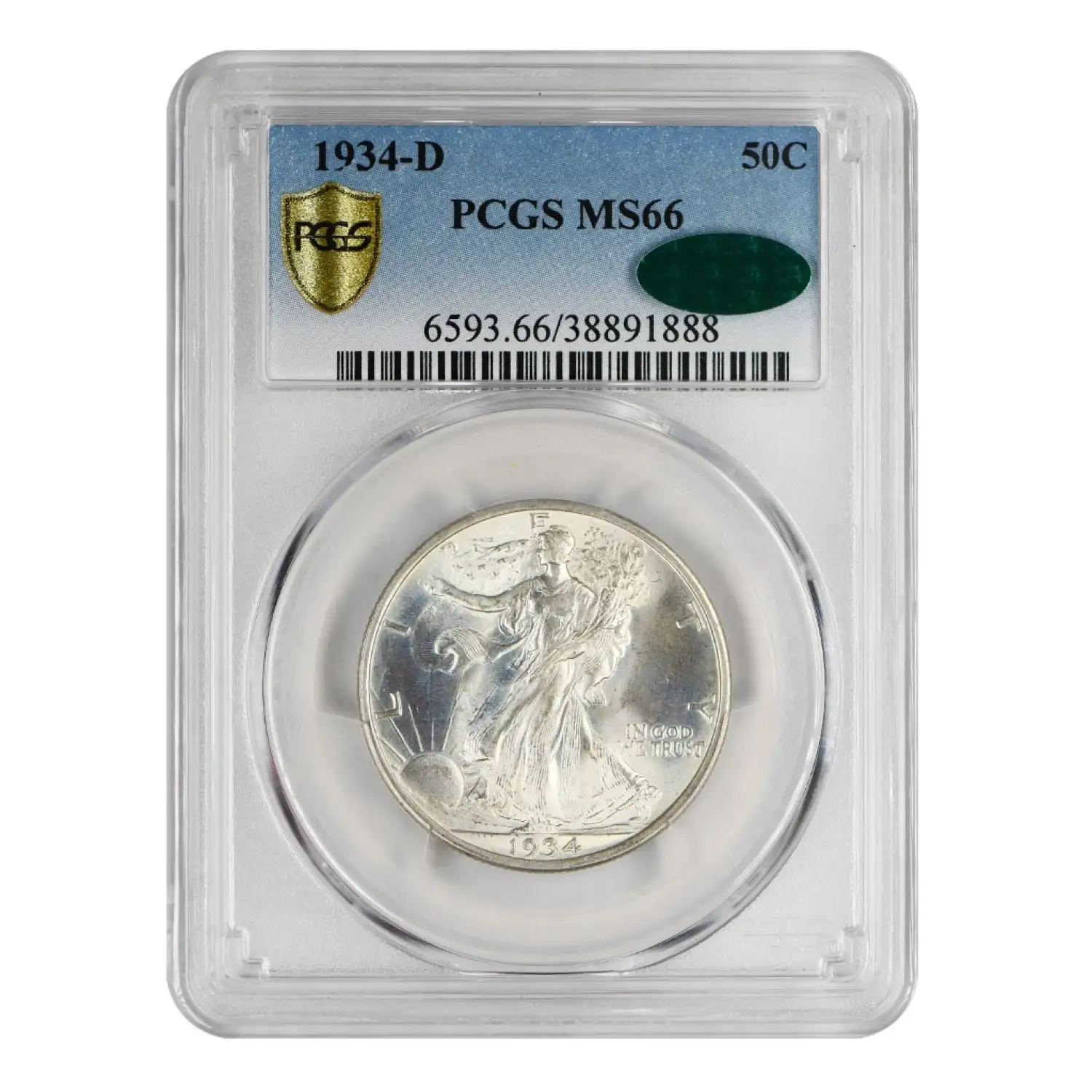 1934 D Walking Liberty Half Dollar PCGS MS-66 CAC