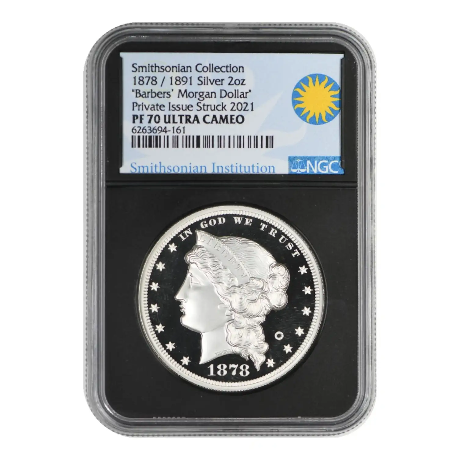 2021 Private Issued Medals NGC PF-70 Smithsonian Collection, Barbers Morgan Dollar 2 oz silver
