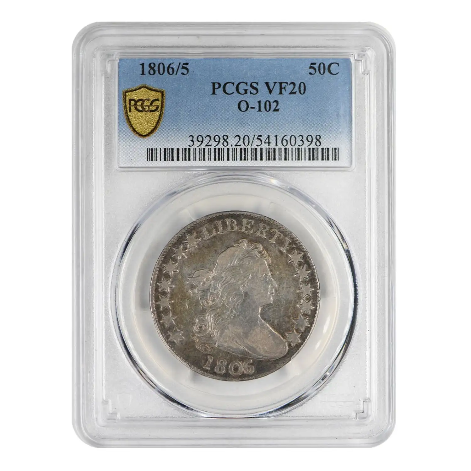 1806/5 P Draped Bust Half Dollar PCGS VF-20 Large Stars O-102