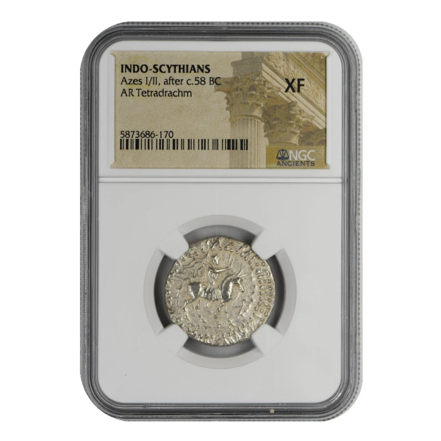 Greece Indo-Scythians 58 BC AR Tetradrachm Azes I/II NGC XF