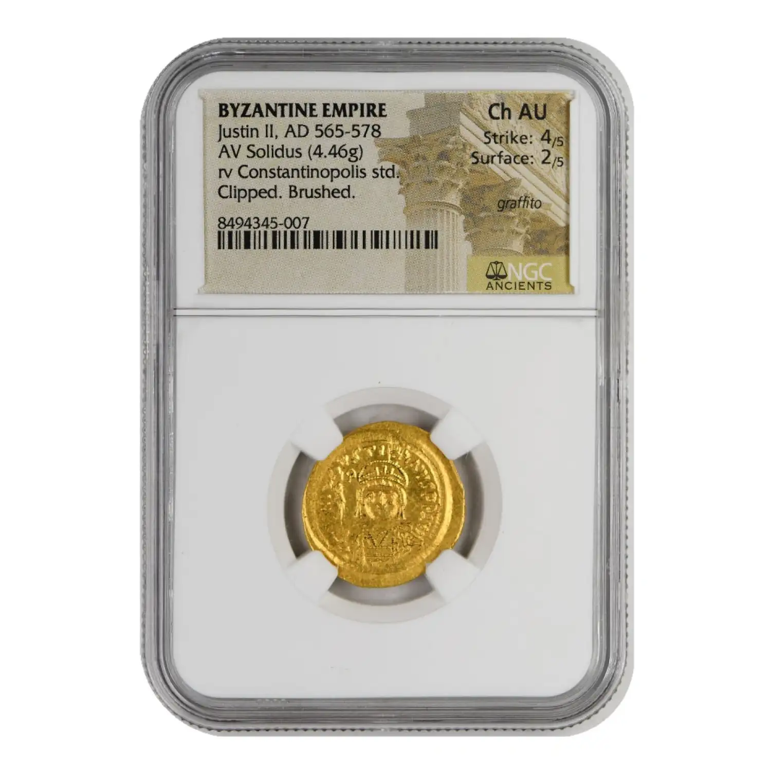 | Variety | Justin II, rv Constantinopolis std. Clipped. Brushed. |