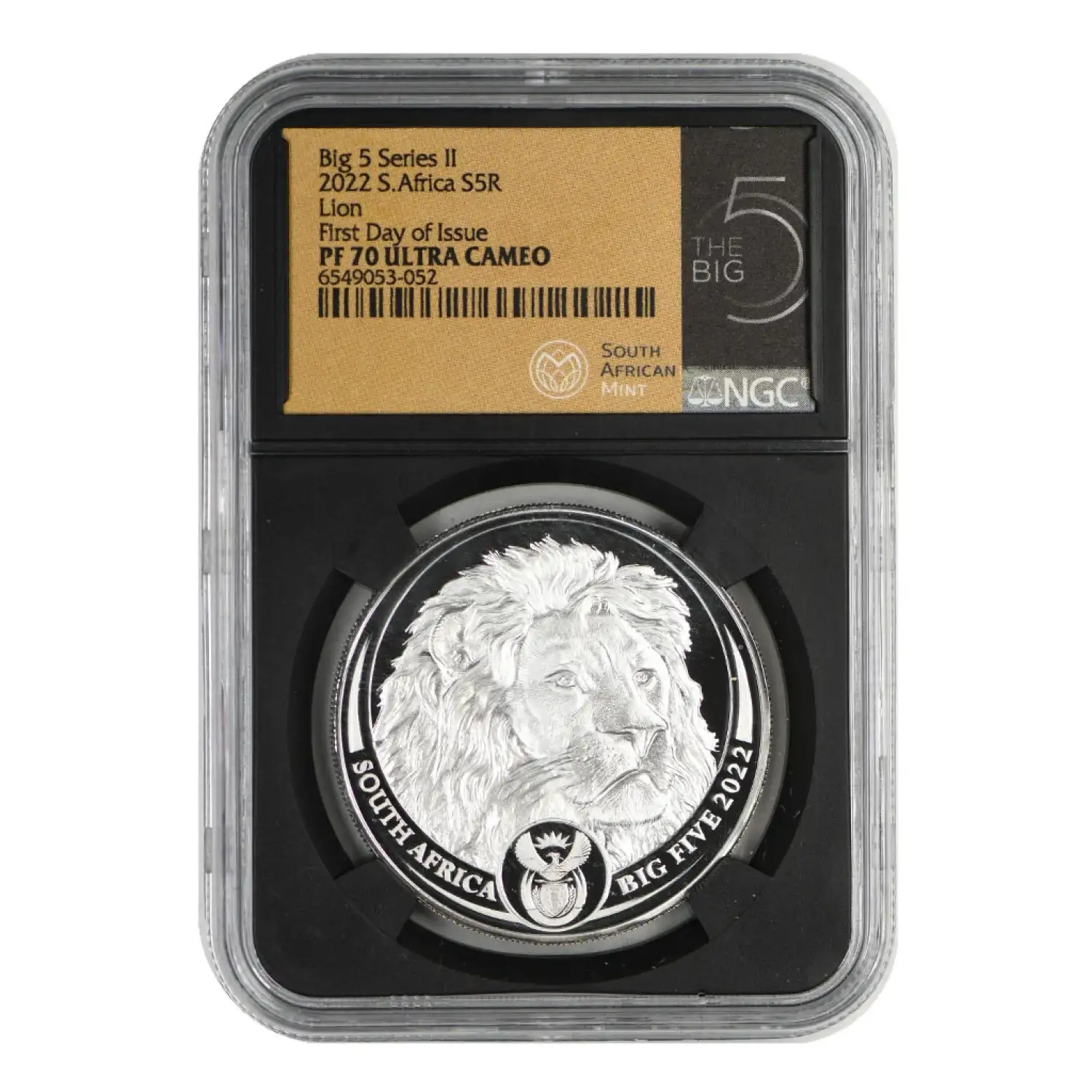 2022 South Africa The Big Five 1 oz Silver NGC PF-70 Lion, Series II, First day of Issue, Ultra Cameo