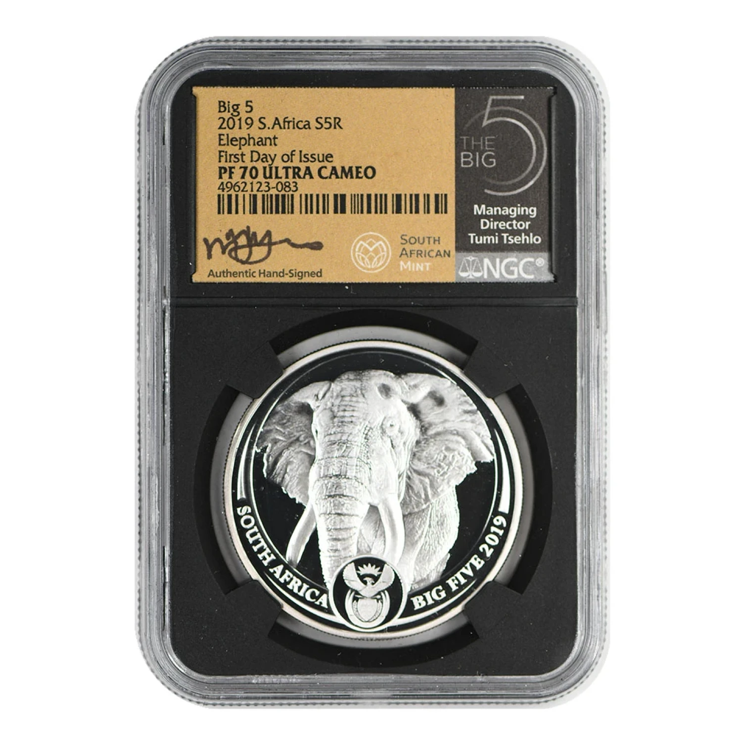 2019 South Africa The Big Five 1 oz Silver NGC PF-70 Elephant, First day of Issue, Ultra Cameo