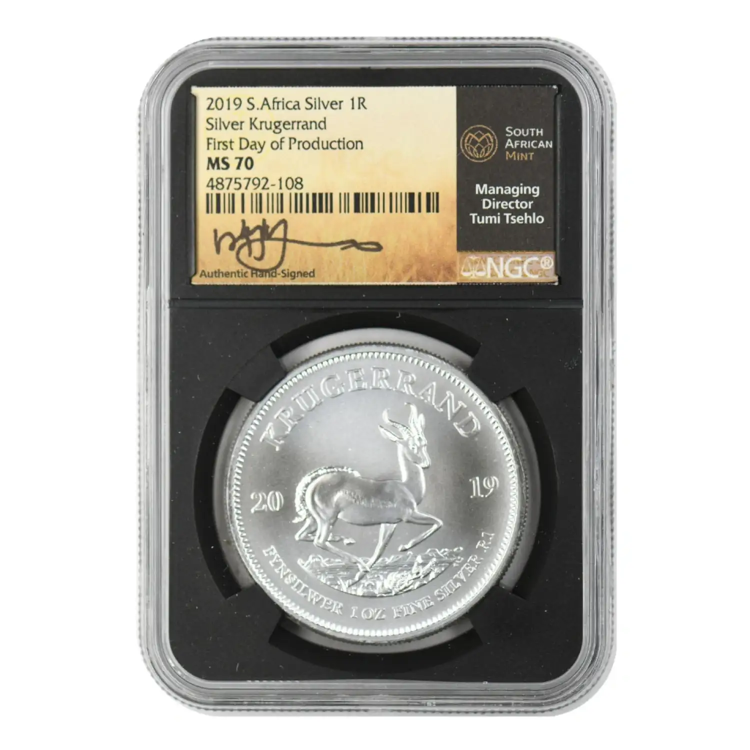 2019 South African Krugerrand Silver 1 oz NGC MS-70