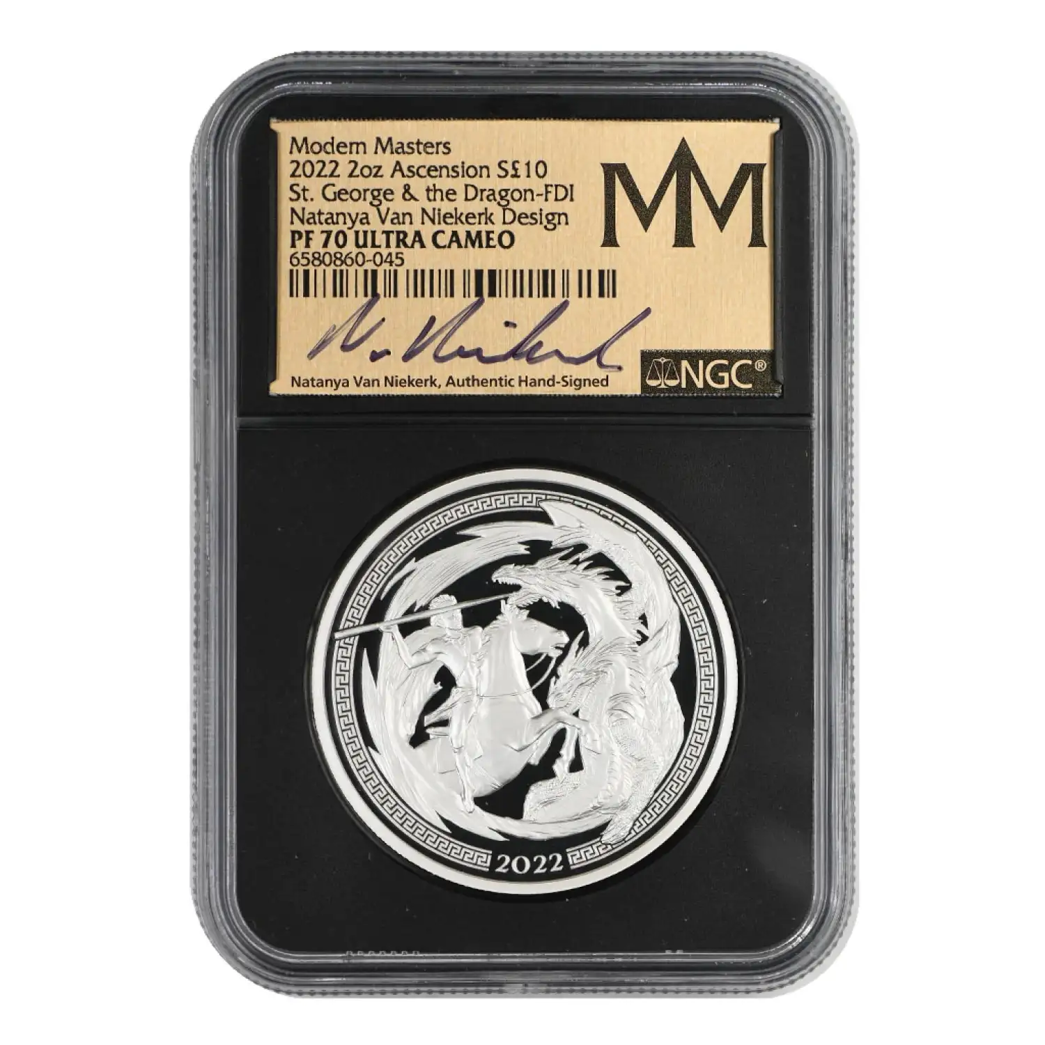 2022 Ascension St. George & the Dragon Modern Masters NGC PF-70 Natanya Van Niekerk Design, Ultra Cameo, 2 oz Silver