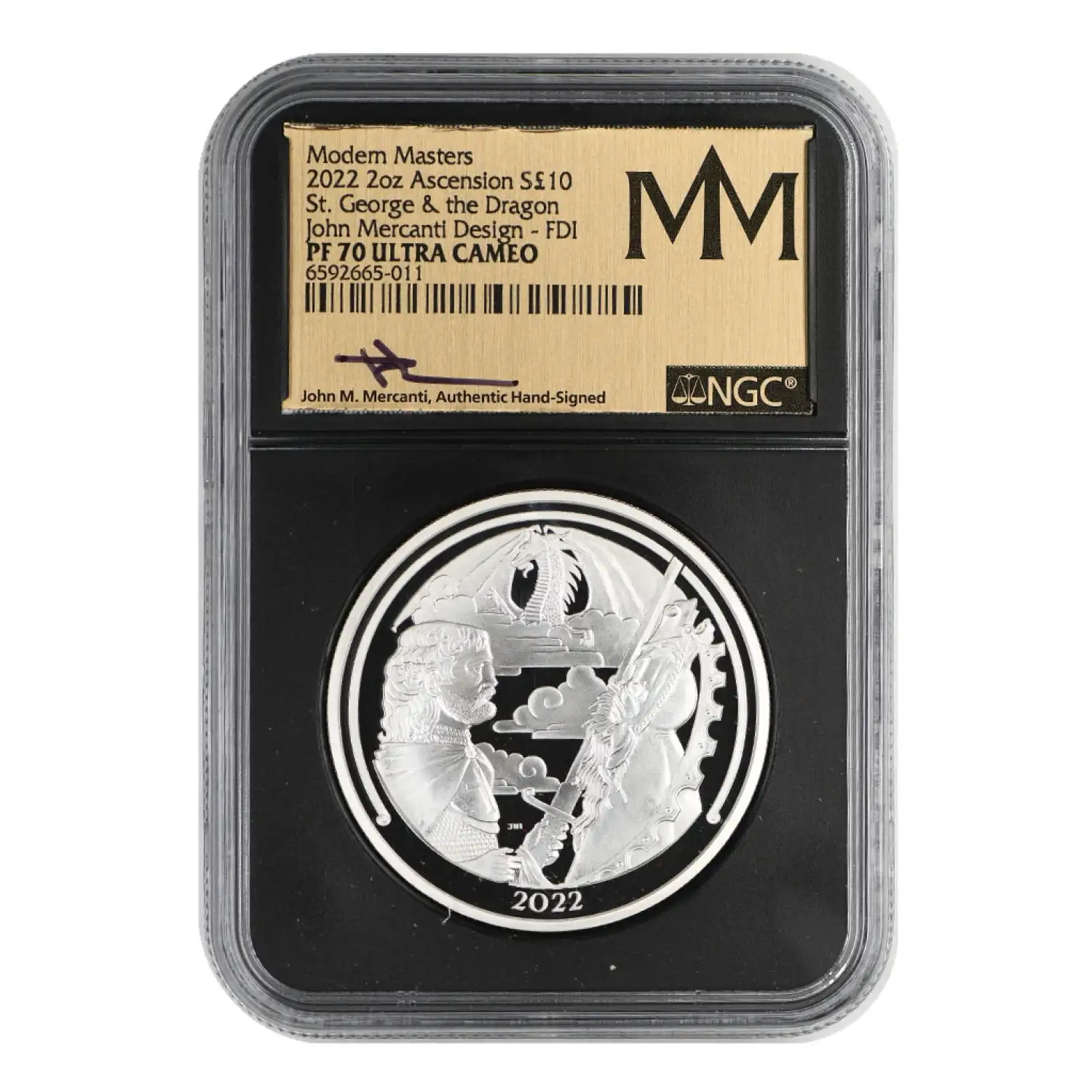 2022 Ascension St. George & the Dragon Modern Masters NGC PF-70 John Mercanti Design, FFID, Ultra Cameo, 2 oz Silver