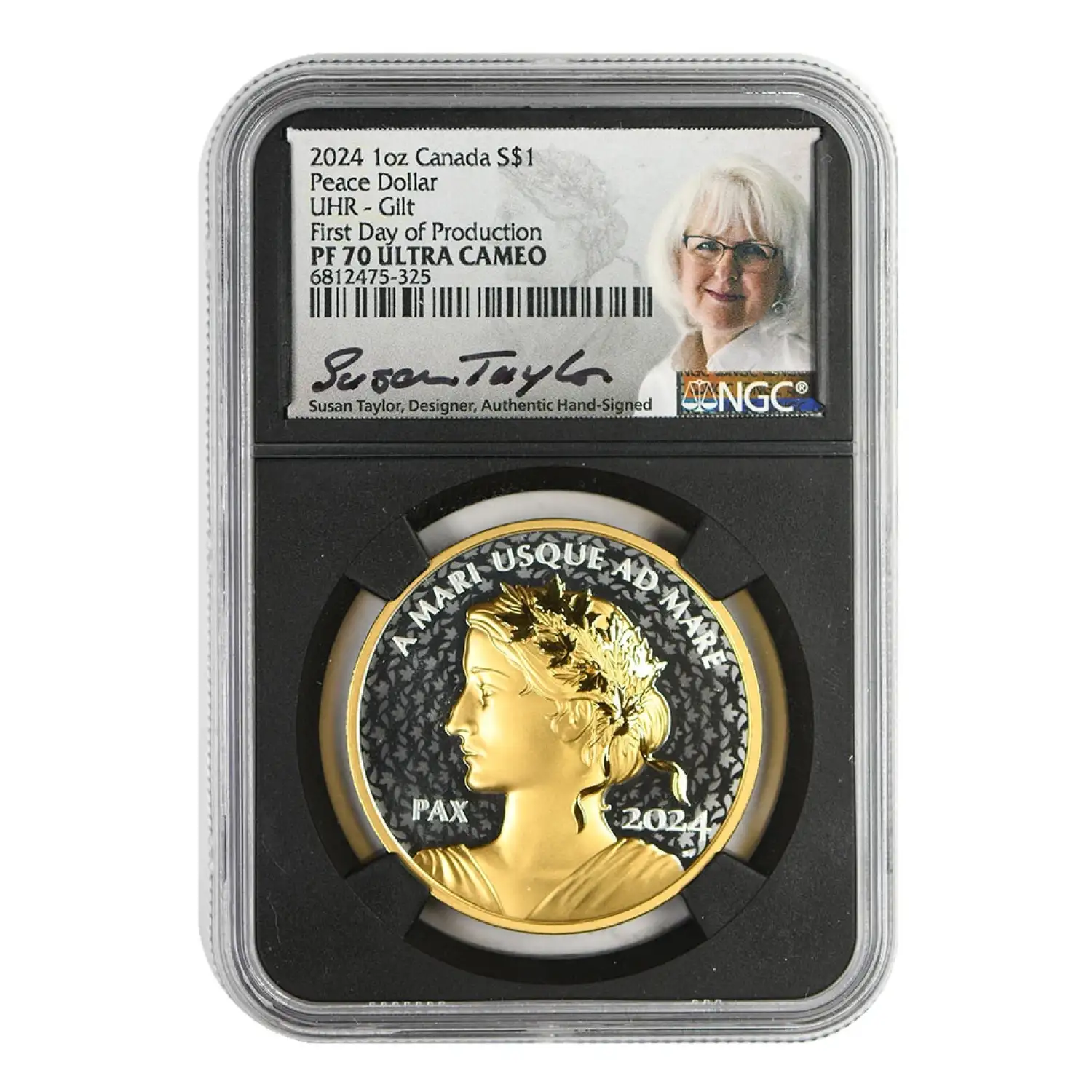 2024 Canadian Peace Dollar 1 oz Silver NGC PF-70 UHR, Gilt, First day of Productions