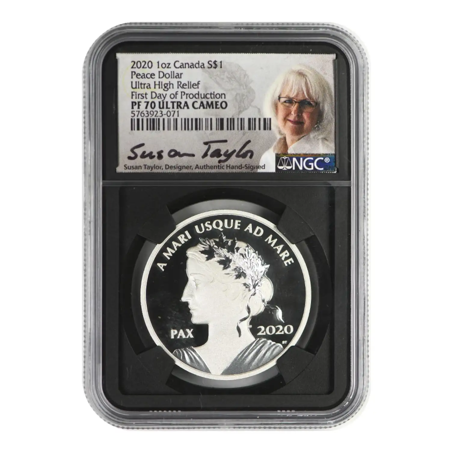 2020 Canadian Peace Dollar 1 oz Silver NGC PF-70 Ultra High Relief, First day of Production, Ultra Cameo