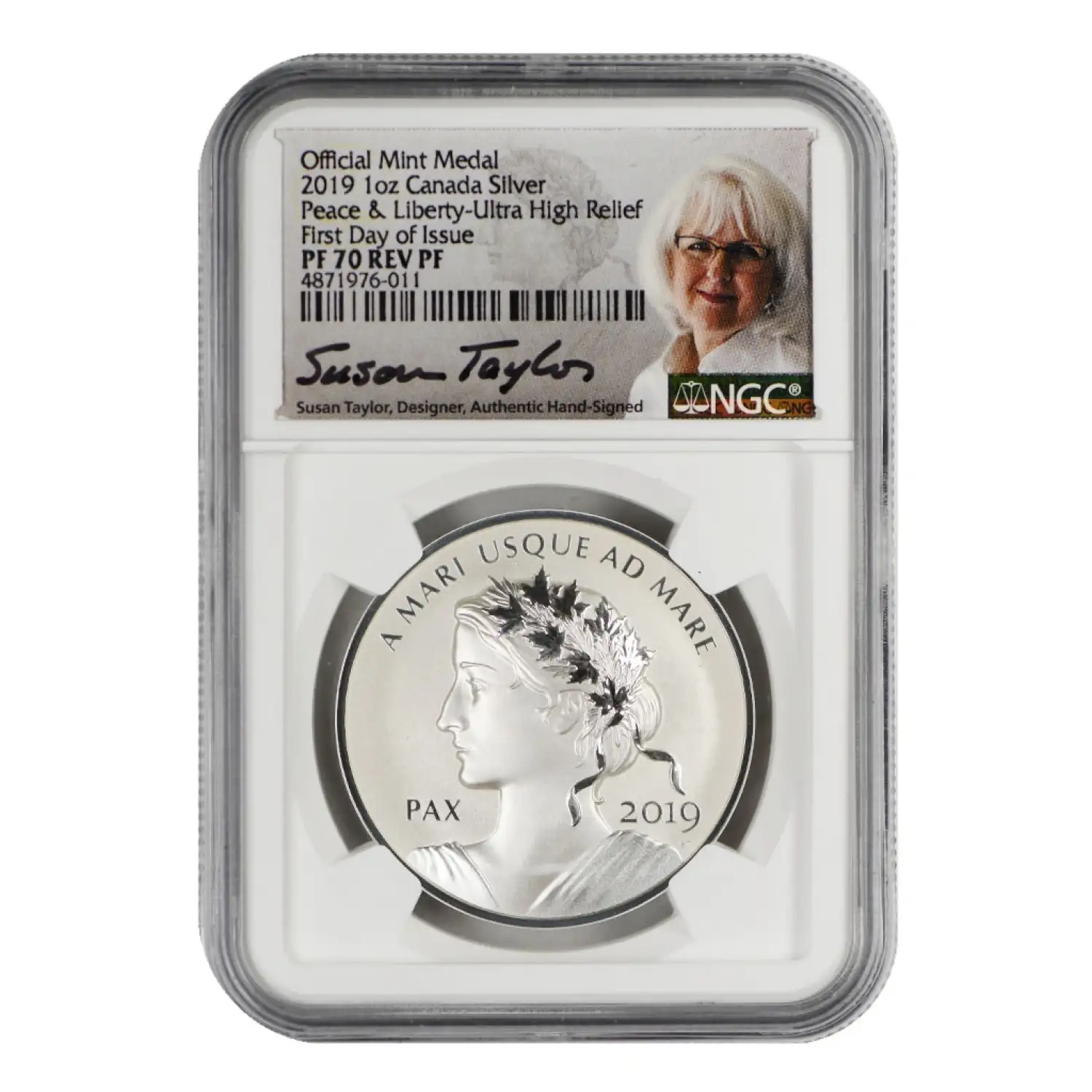 2019 Canadian Peace & Liberty Official Mint Medal 1 oz Silver NGC PF-70 First day of Release, Reverse Proof