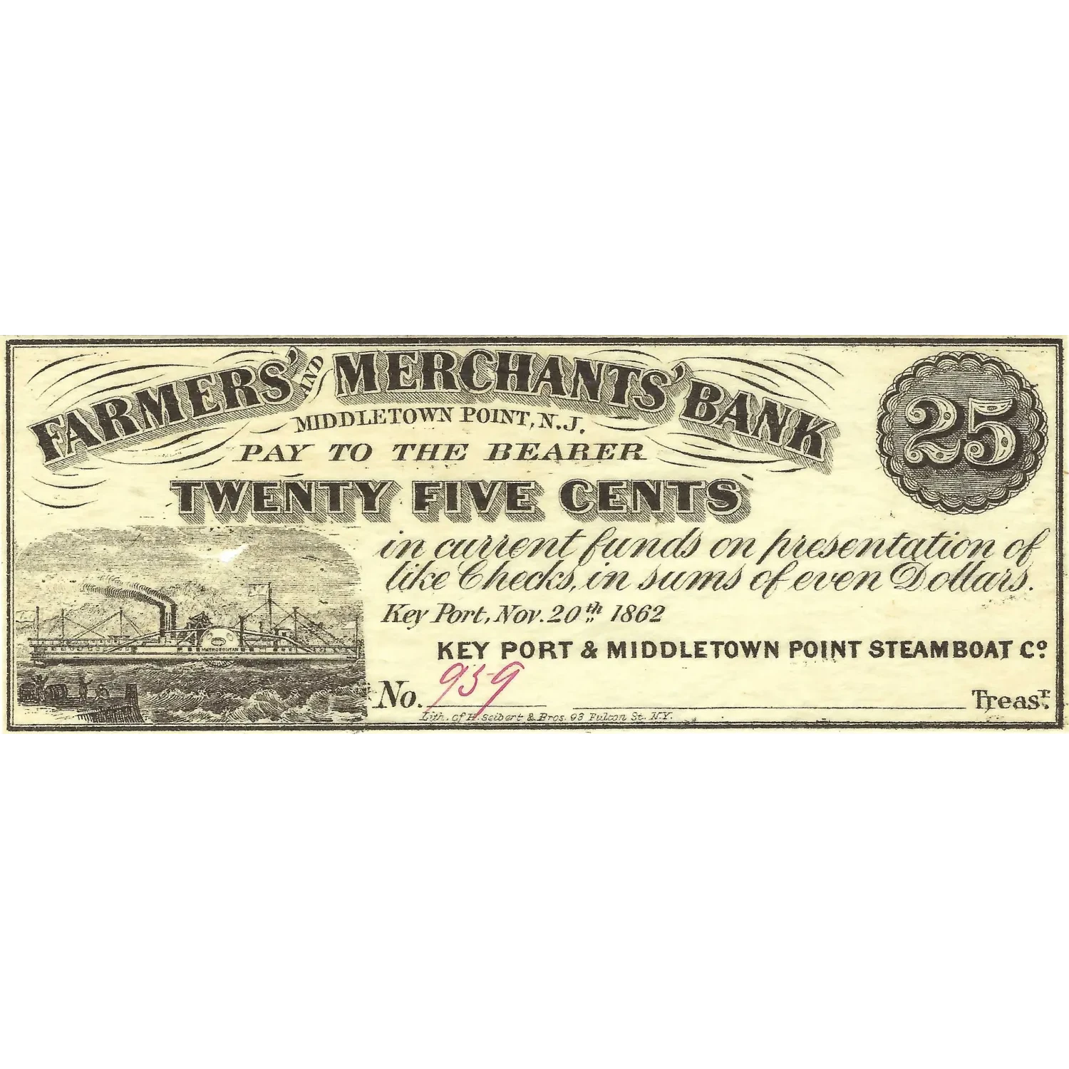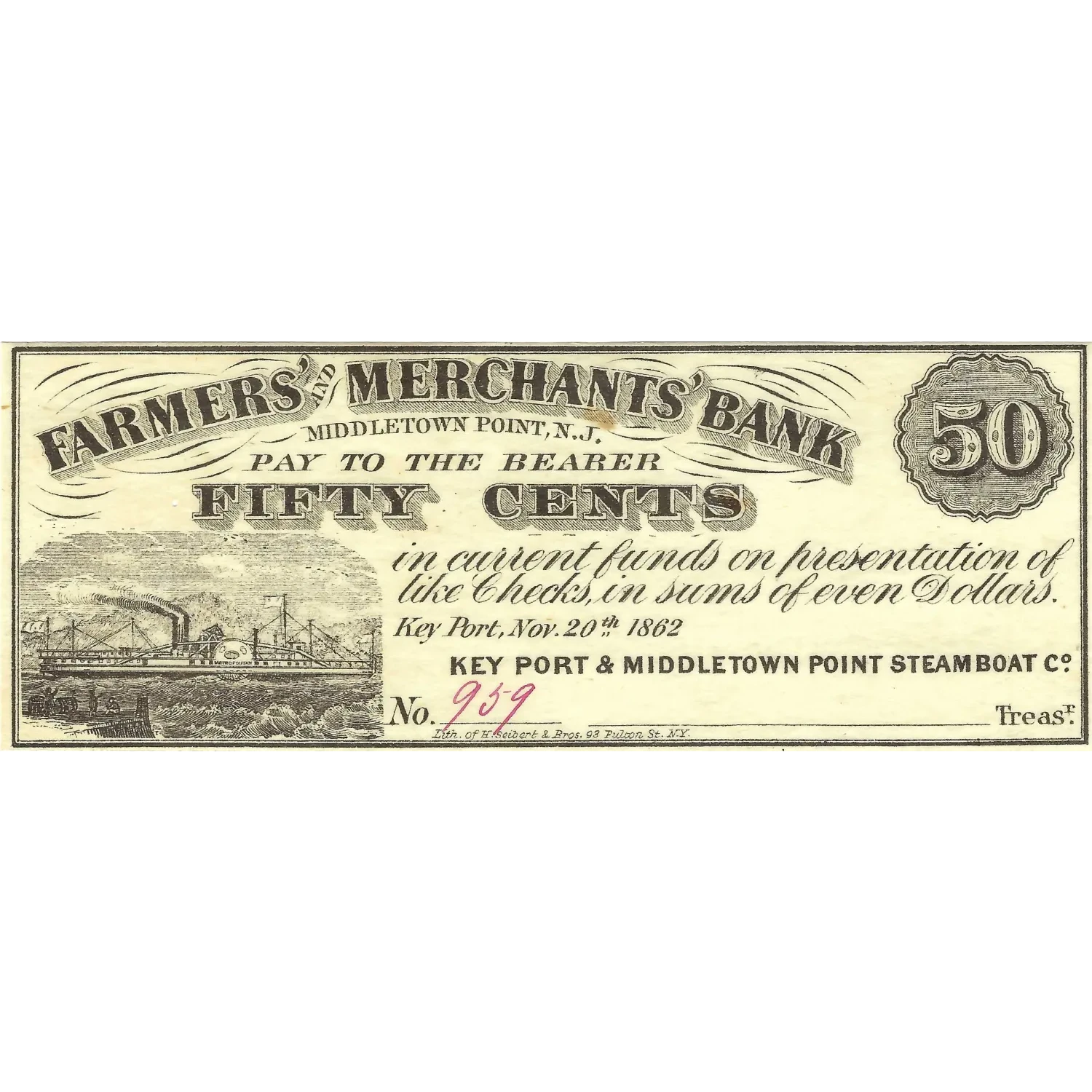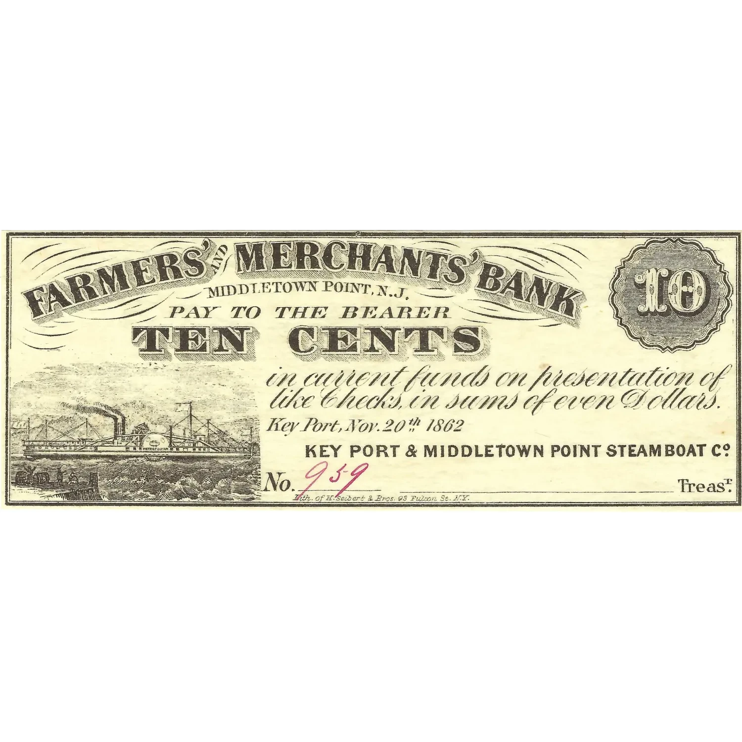U.S. Obsolete Currency, 10, 25, & 50 Cents Fractional Currency, Middletown Point NJ