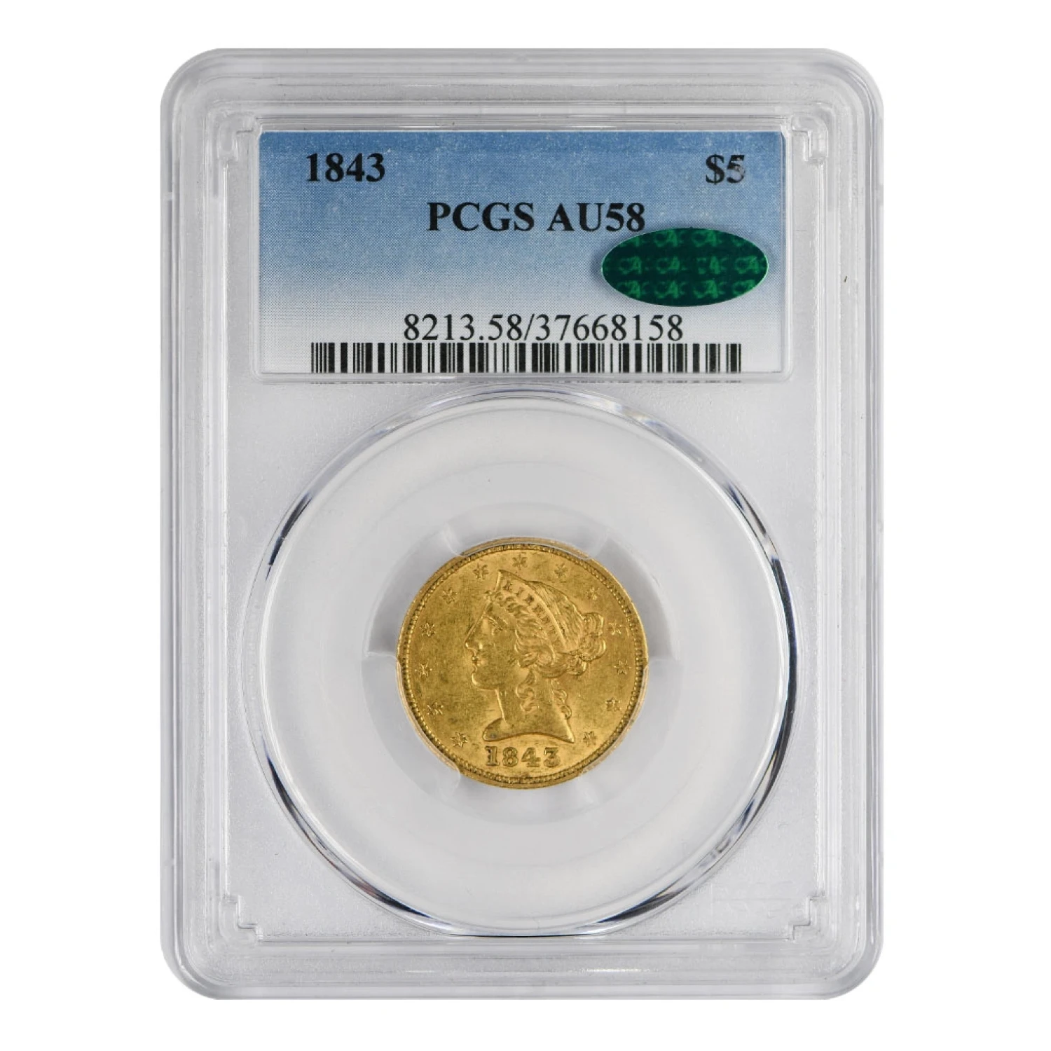 1843 P Gold Half Eagles Liberty Head PCGS AU-58 CAC