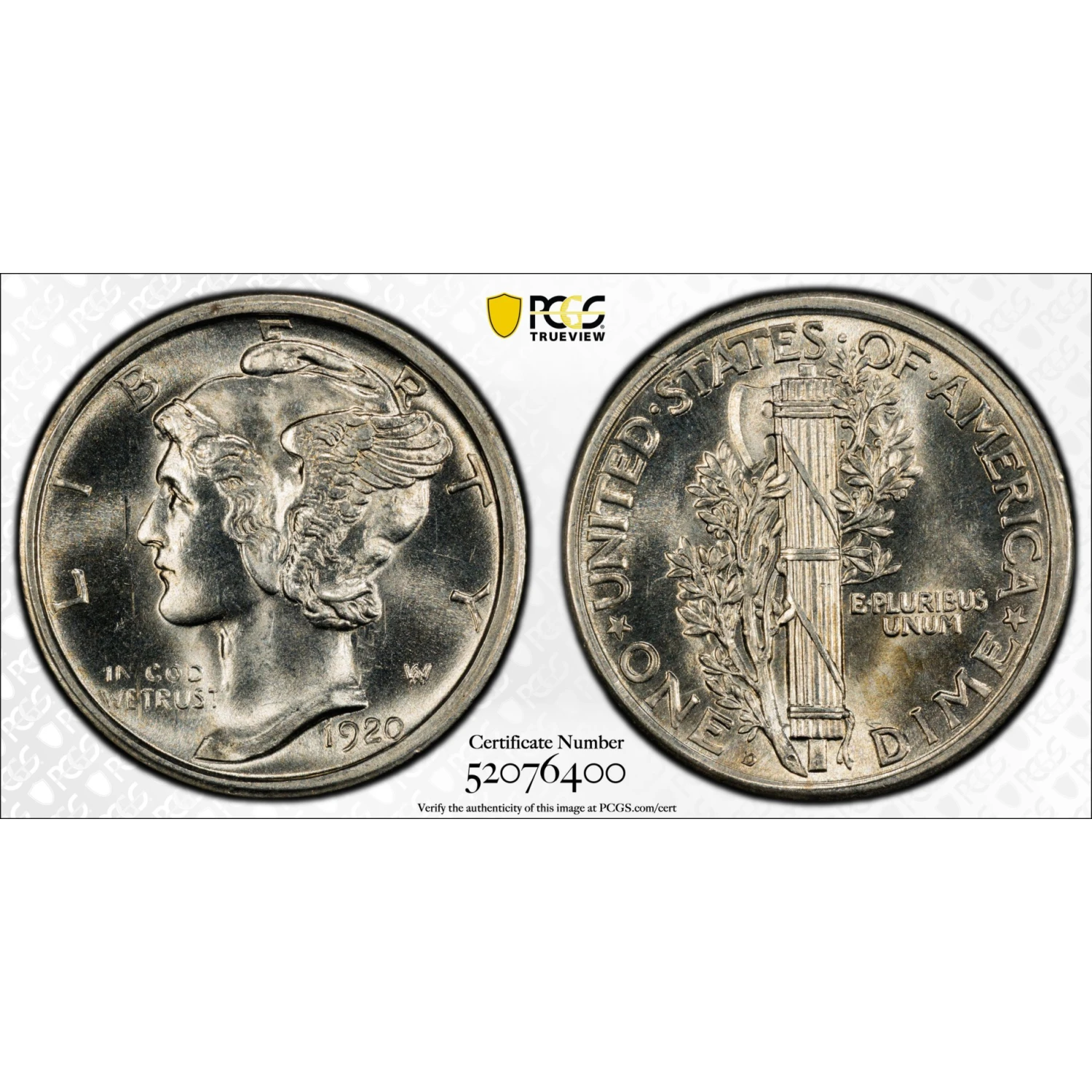 1920 D Mercury Dime PCGS MS-64 FB