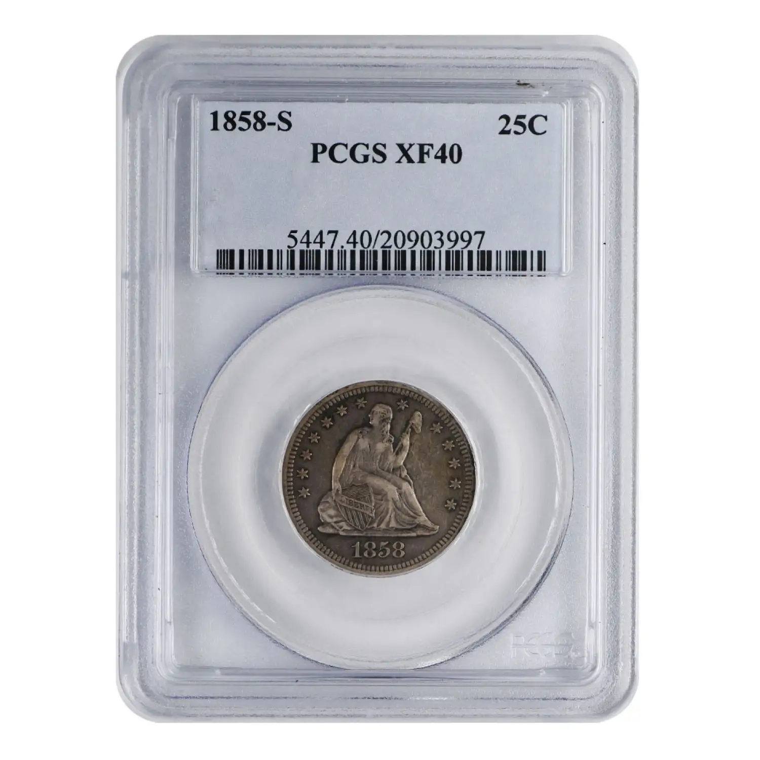 1858 S Seated Liberty Quarter PCGS XF-40