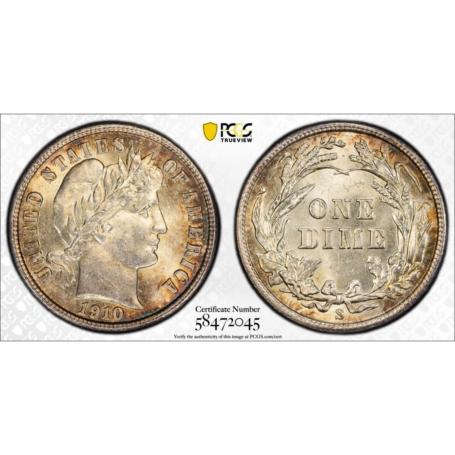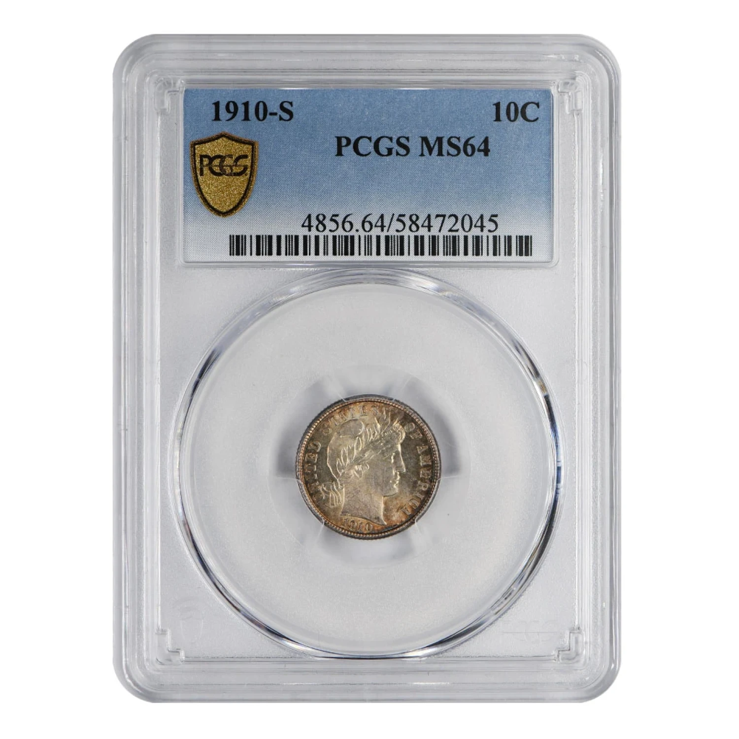 1910 S Barber Dime PCGS MS-64