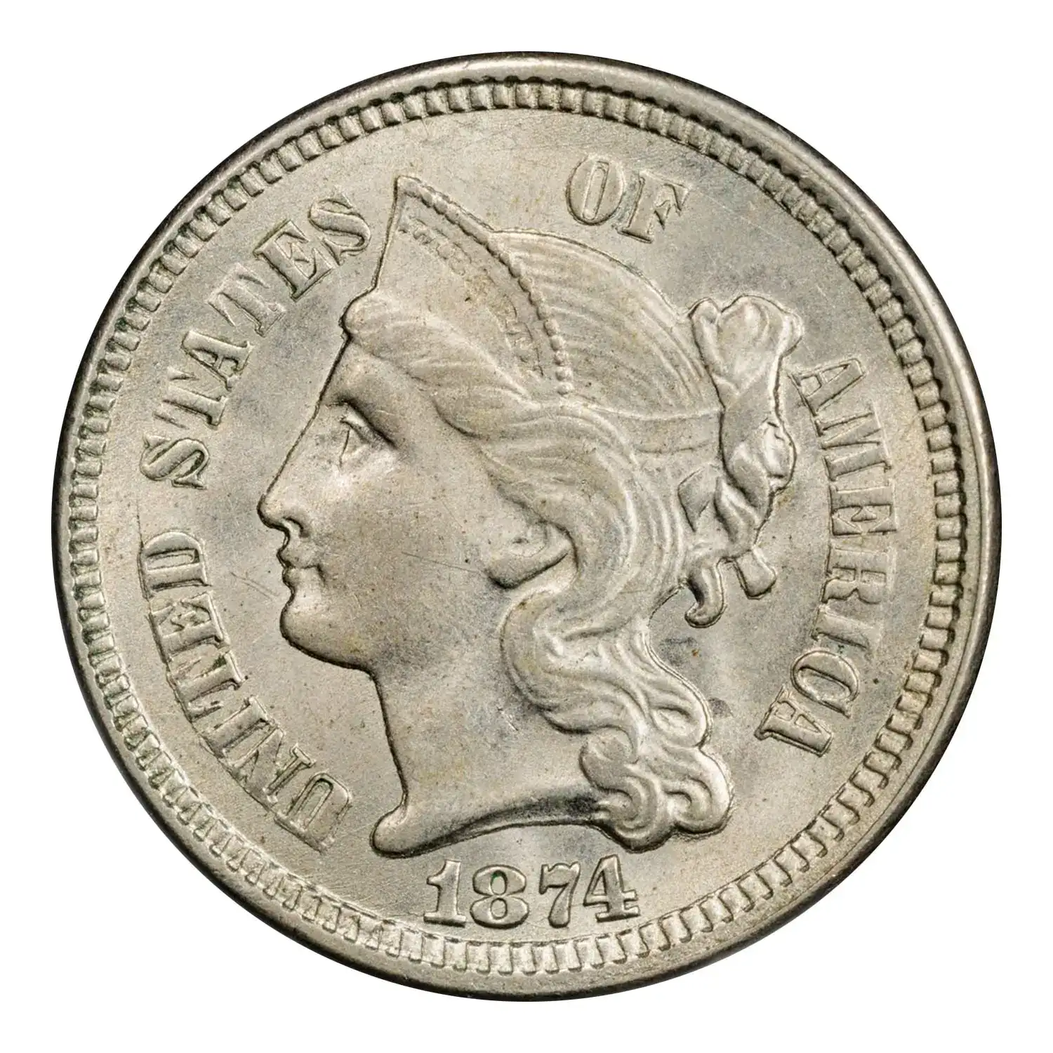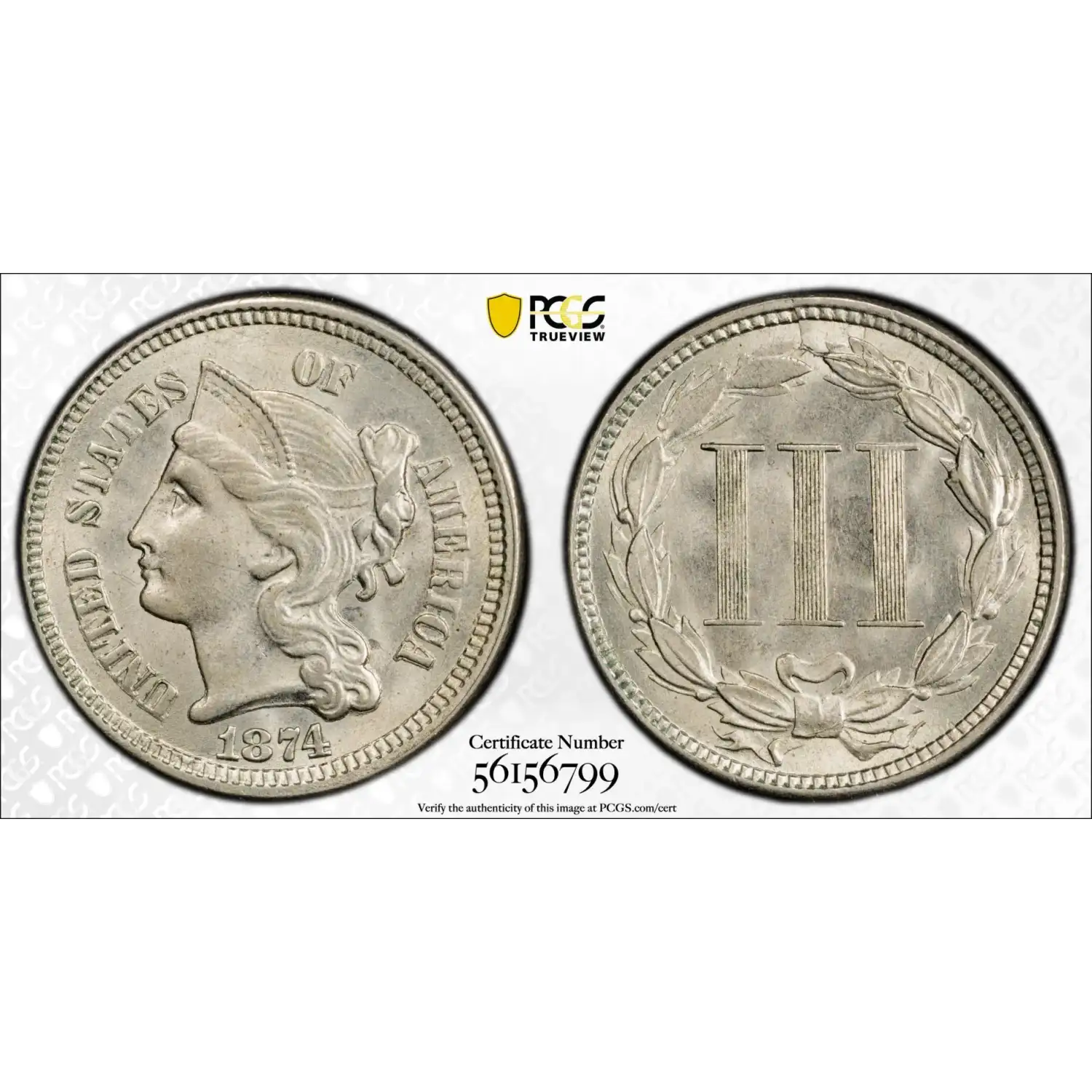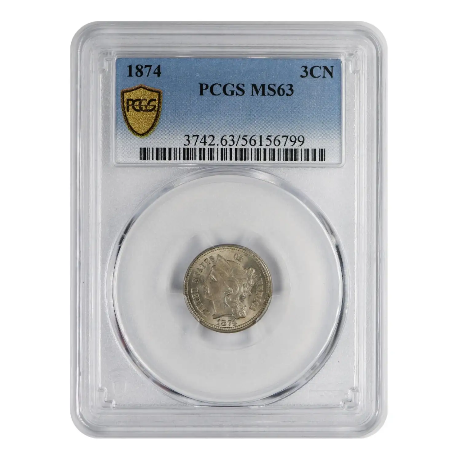 1874 P Nickel Three Cent Piece PCGS MS-63