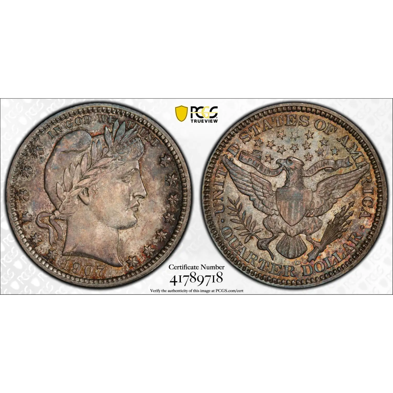 1907 D Barber Quarter PCGS MS-64