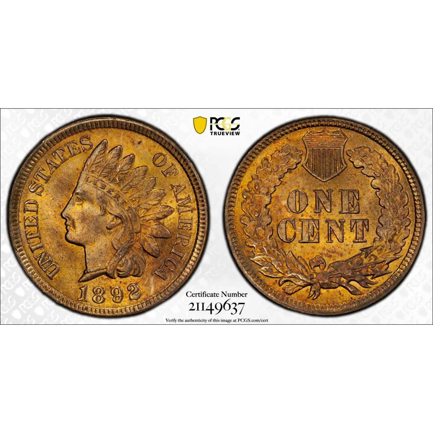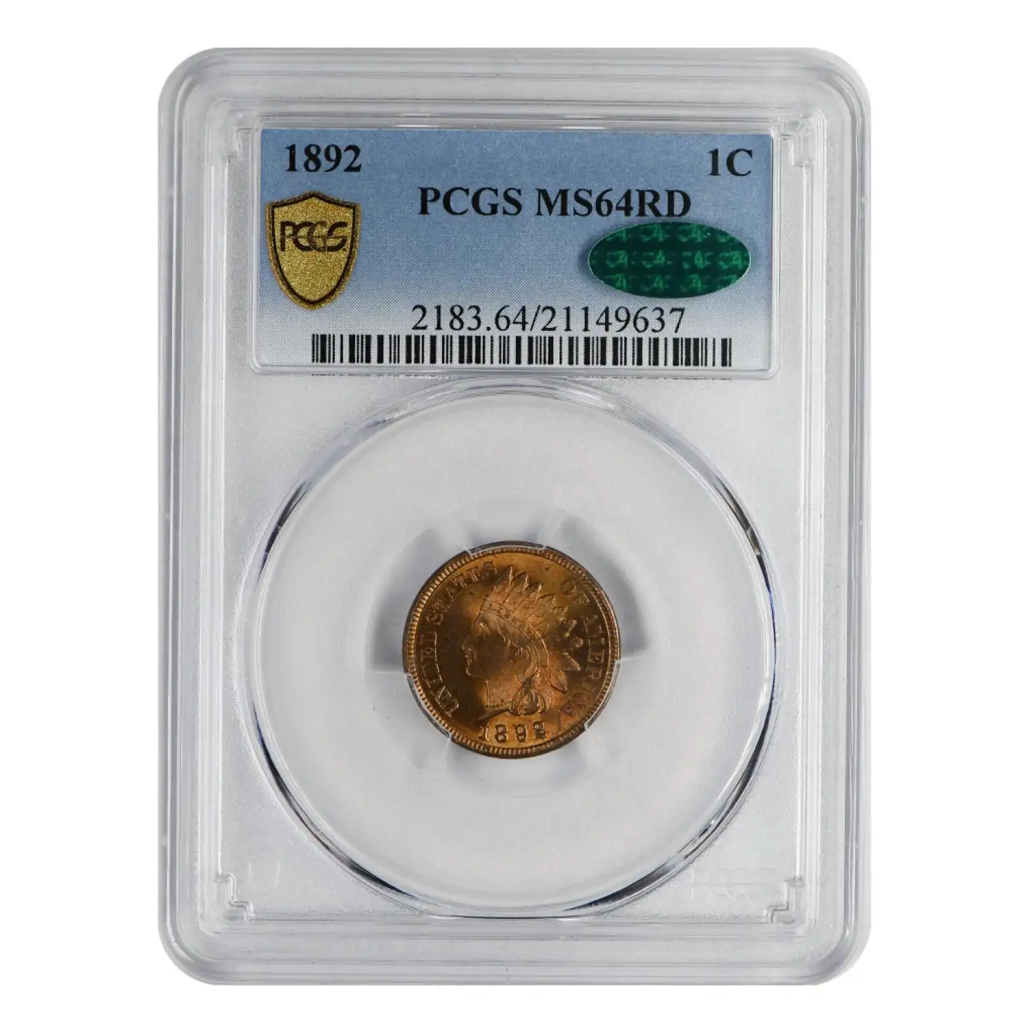 1892 P Indian Head Cent PCGS MS-64 RD CAC