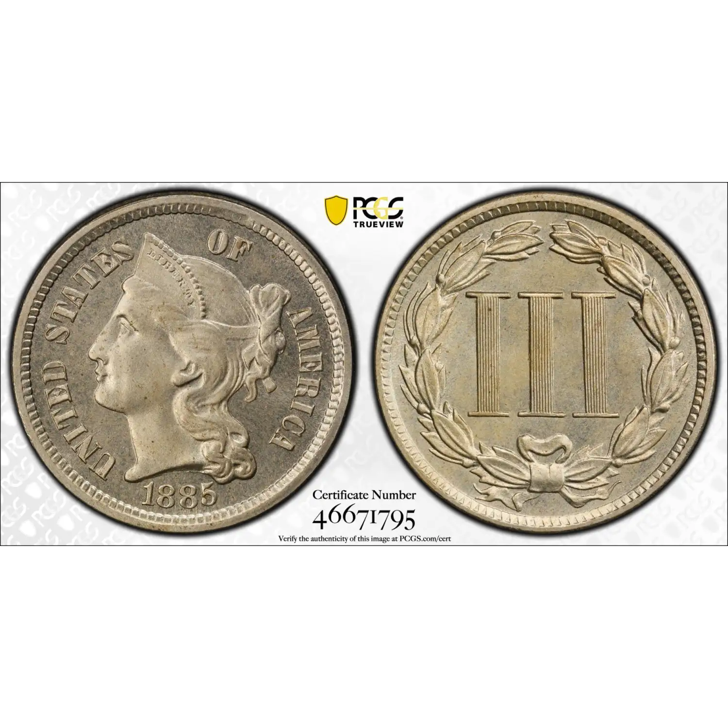 1885 P Nickel Three Cent Piece PCGS PR-64 CAC