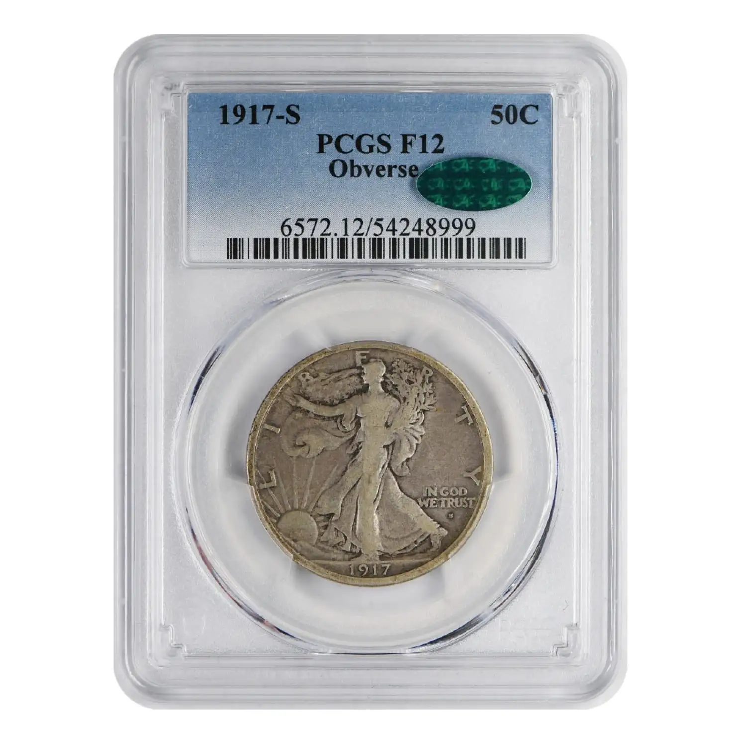 1917 S Walking Liberty Half Dollar PCGS F-12 Obverse CAC