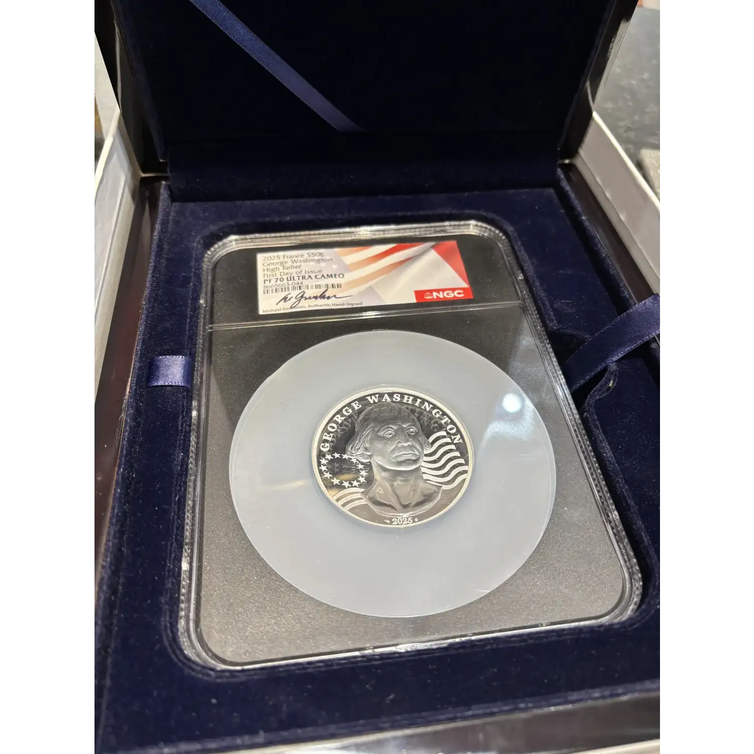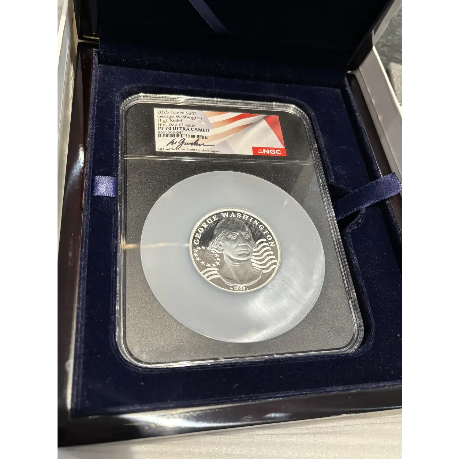 2025 French George Washington 5 oz Silver NGC PF-70 High Relief, First day of Issue