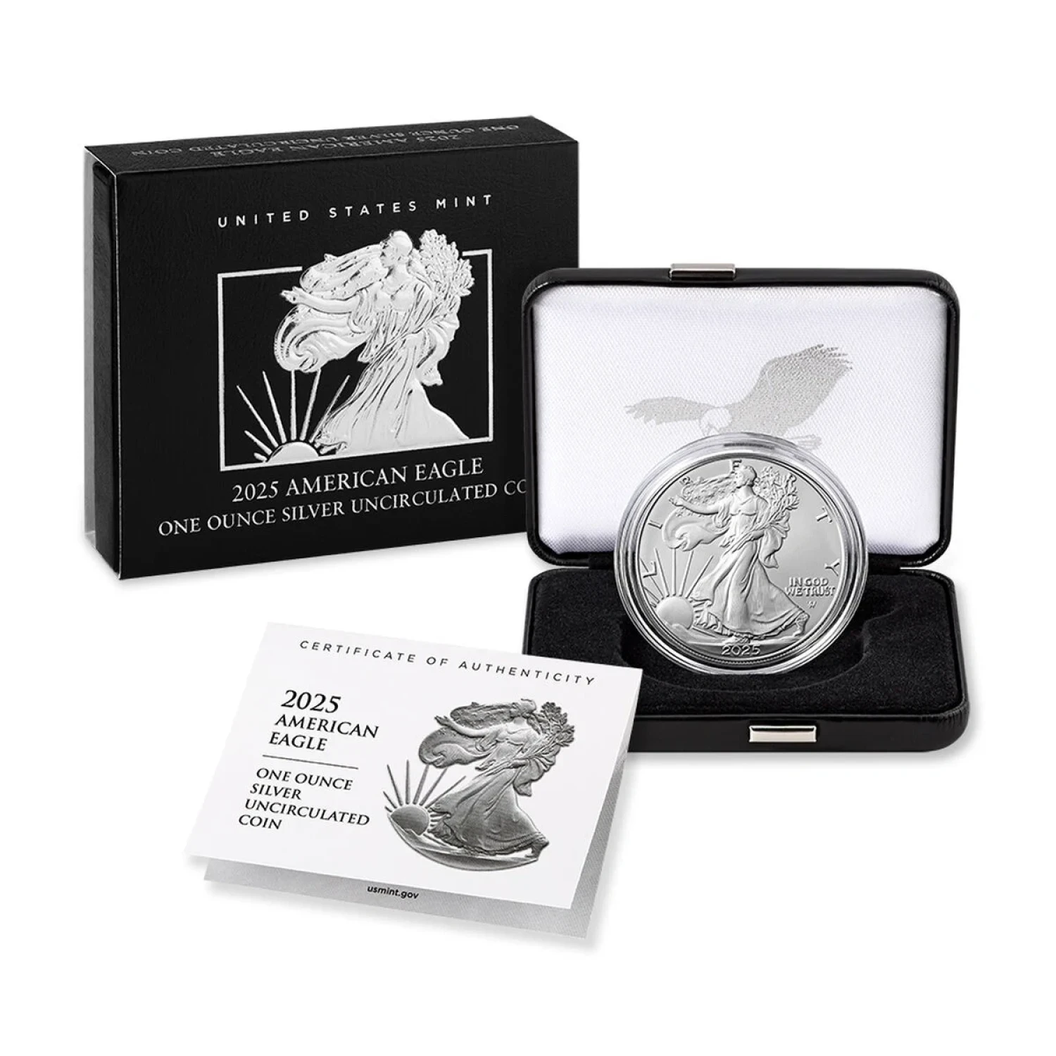 | Name | 2025 1 oz American Silver Eagle Uncirculated With Box And COA |