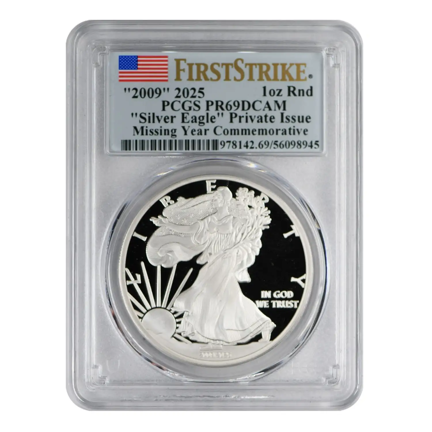 | Variety | "Silver Eagle" Private Issue Missing Year Commemorative First Strike |