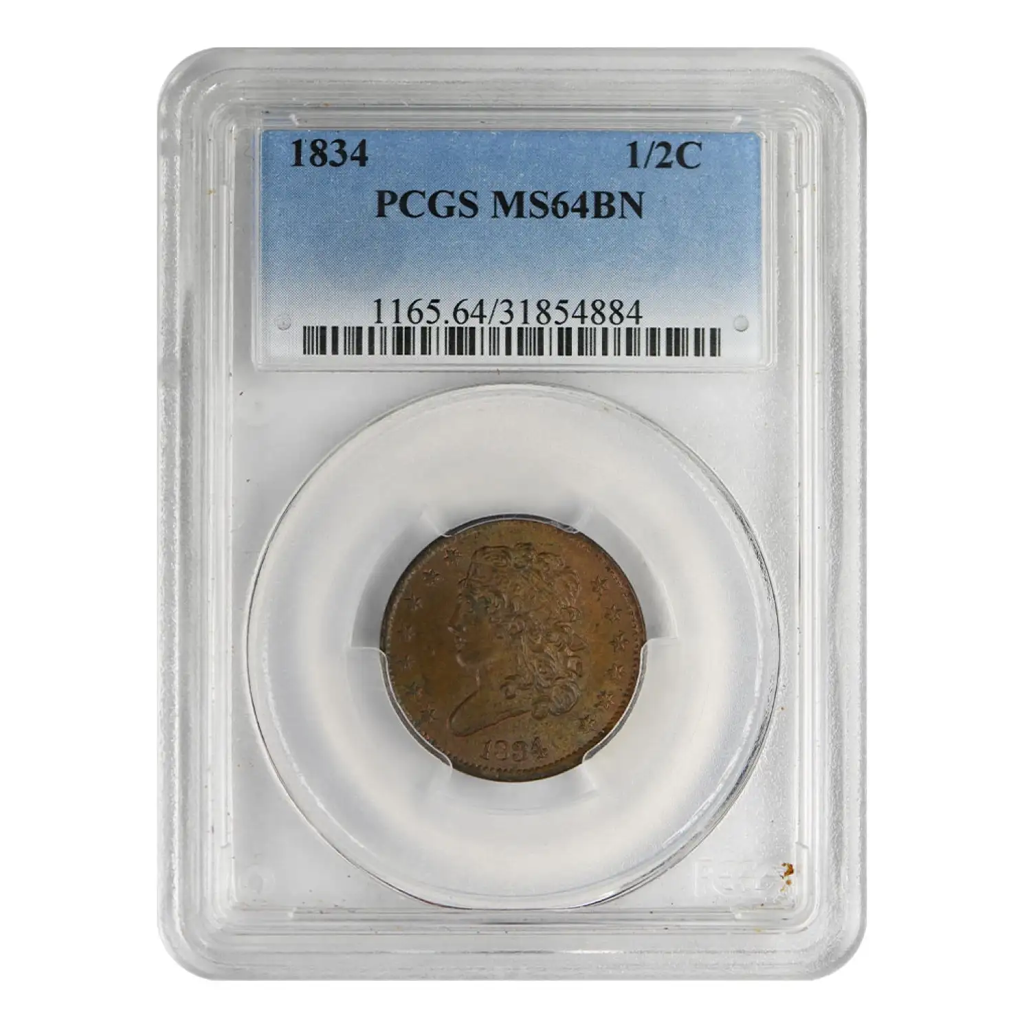 1834 Classic Head Half Cent PCGS MS-64 BN
