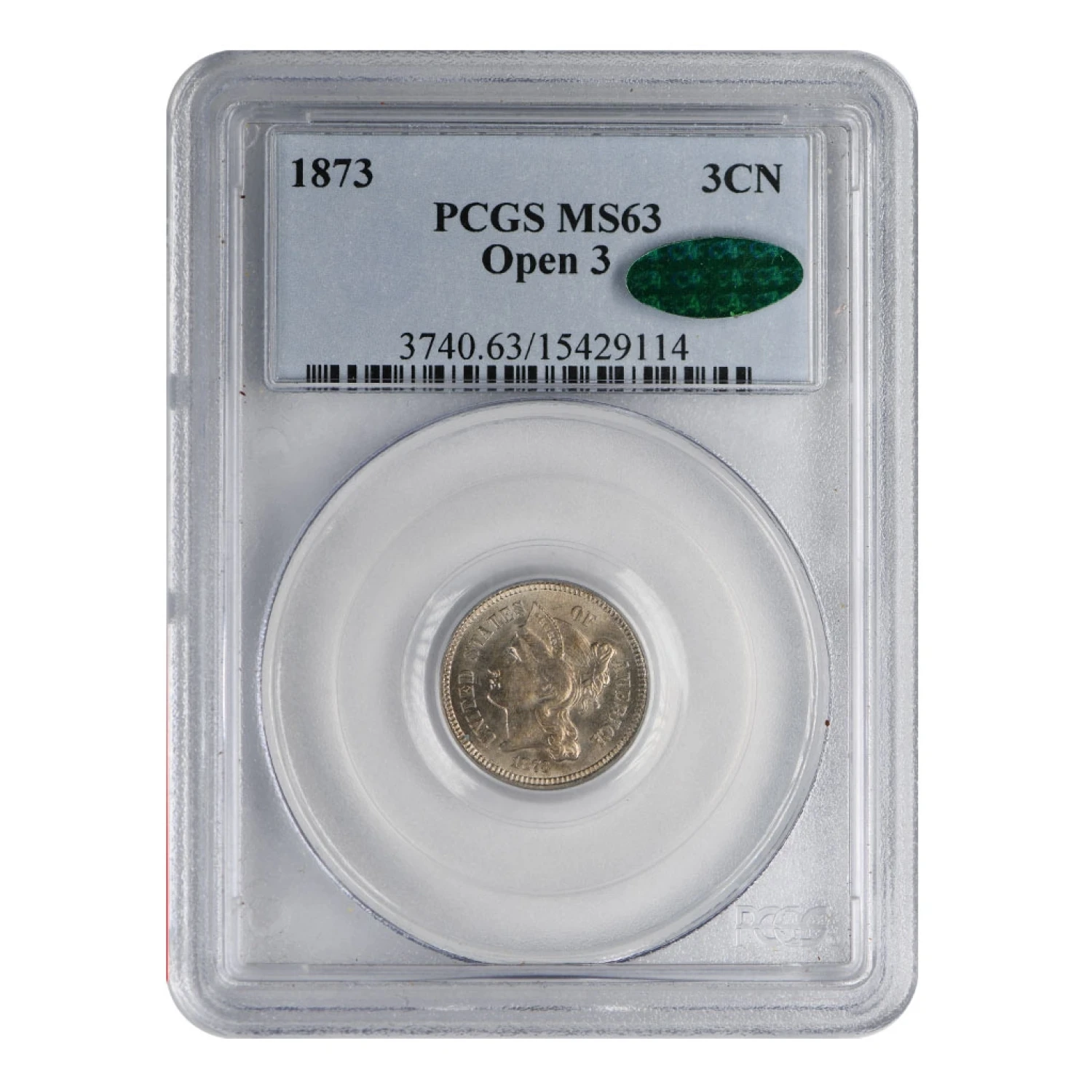 1873 Nickel Three Cent Piece PCGS MS-63 Open 3 CAC